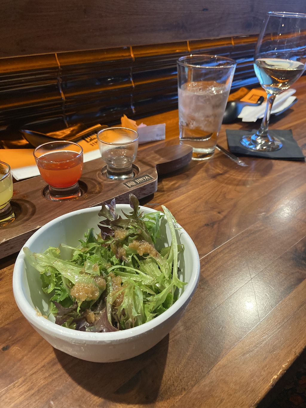 The menu is stuffed with ramen and sushi options for the plant friendly — all clearly labeled. We ordered the veggie gyoza, and the flying vegan harvest and vegan red fire ramen. There was honestly no complaints. the gyoza was packed with impossible meat, unique for a gyoza, and formed in fun square shapes. The ginger salad was the best chunky, real ginger sauce I have had. (No 1000 Island Ginger here) The ramen was expansive in flavor and boundless in texture. The savory matches well with the salty to not overpower each other. The entirely is balance and layered.