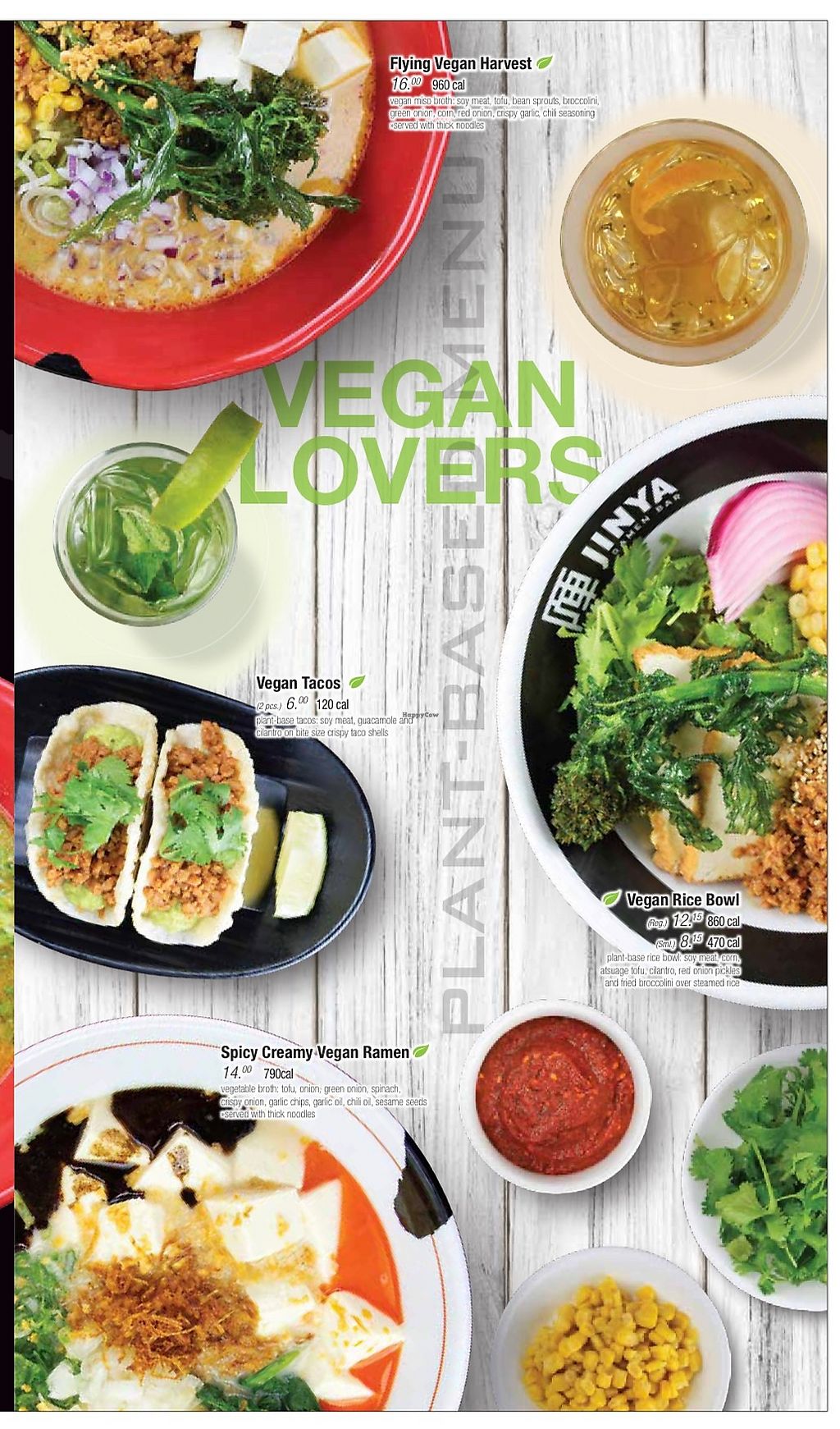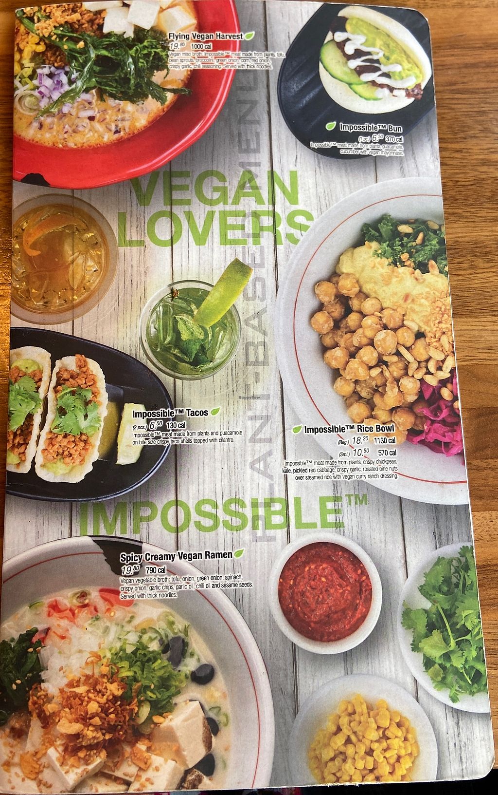 Vegan page on the menu showing four mains: the Flying Vegan Harvest, S…