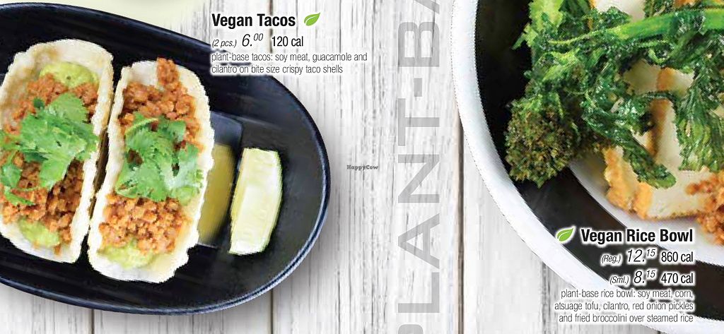 Vegan Tacos: soy meat, guacamole and cilantro on bite size crispy taco…