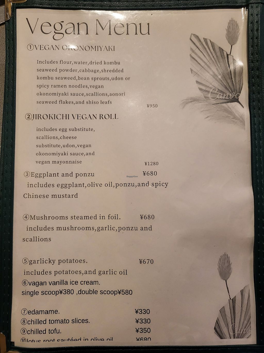 Jirokichi roll (closer) and okonomiyaki both vegan