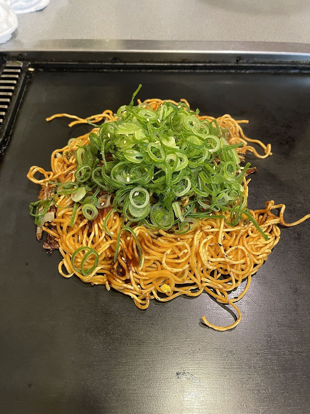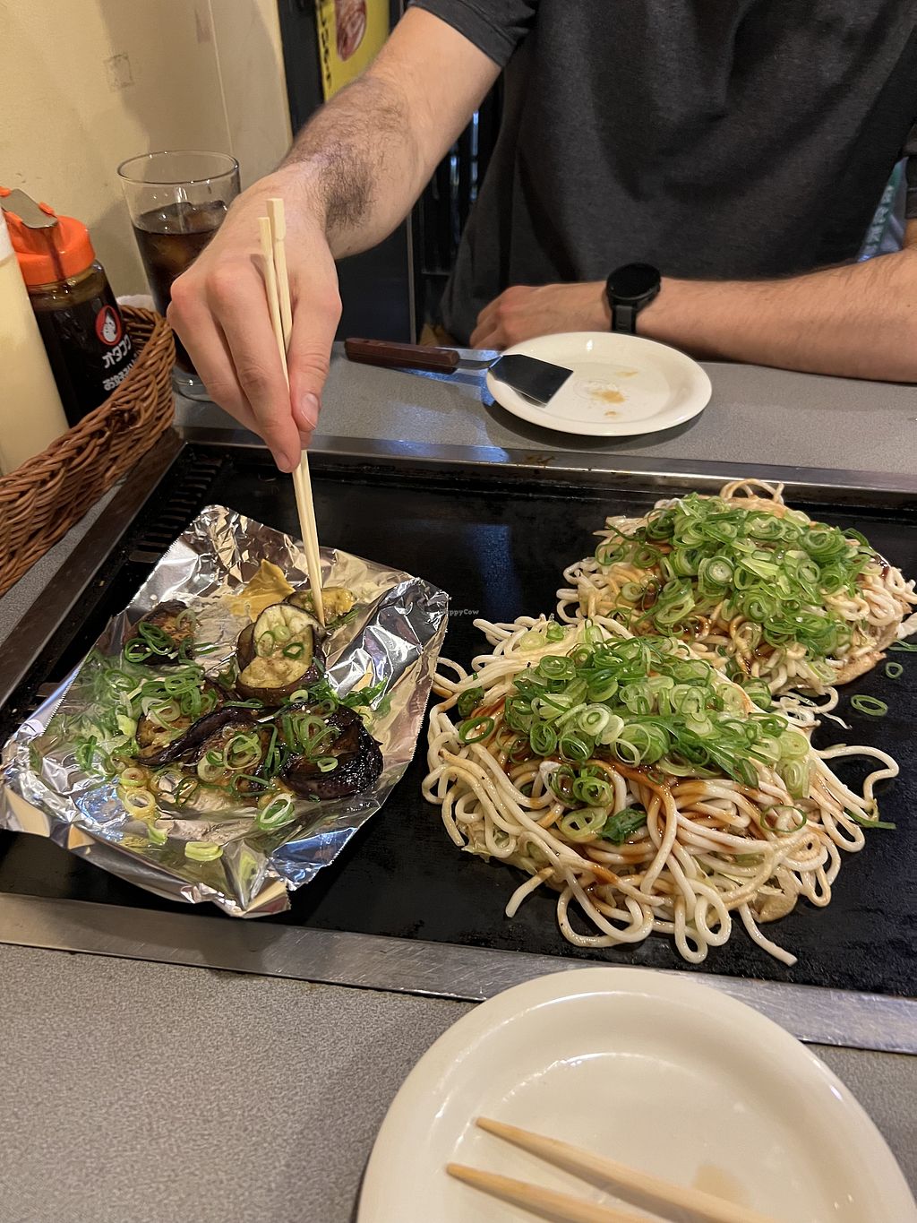 Eggplant with ponzu and two orders of vegan okonomiyakii