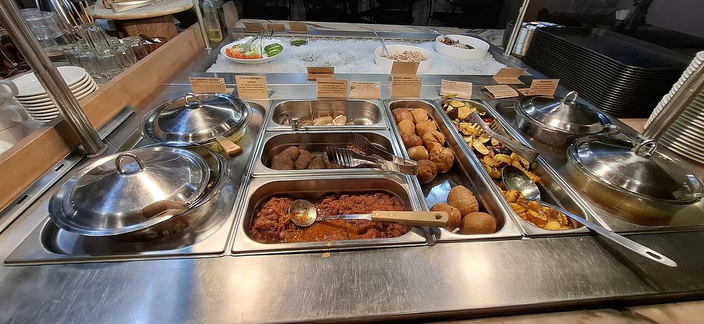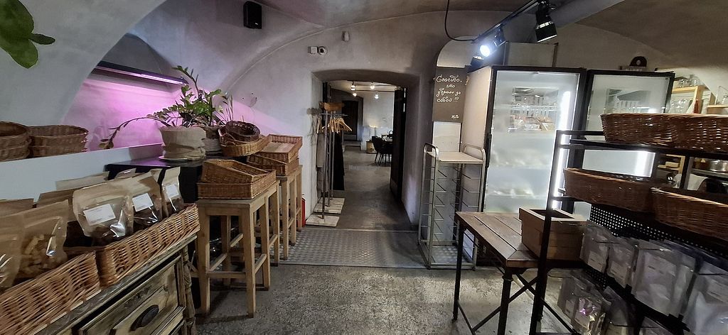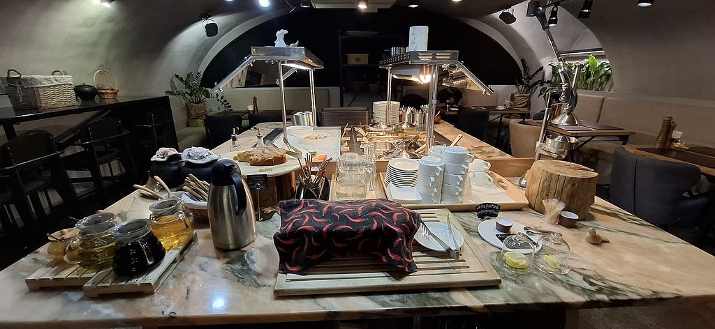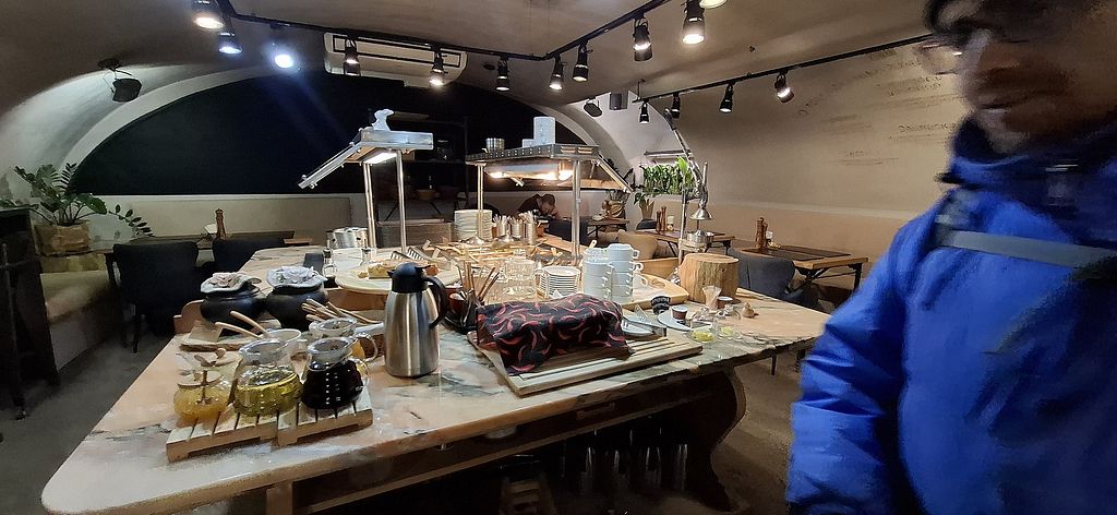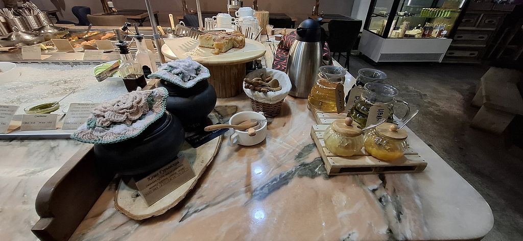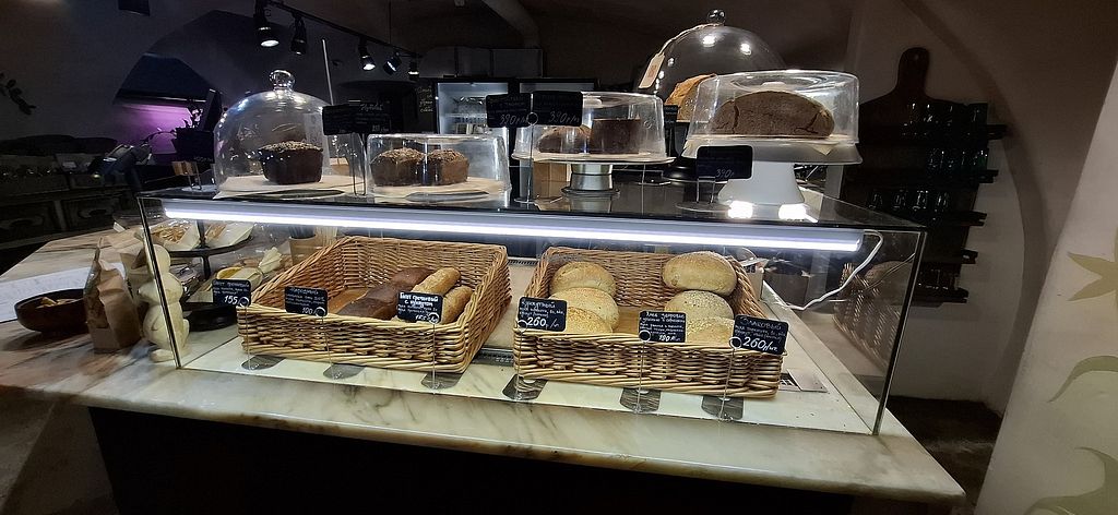 Amazing “shuba” salad with nori, delicious berry drink “vzvar”. They make sourdough bread and pastries. The buffet variety changes throughout the day, they also have menu options and interesting drinks like acorn coffee.