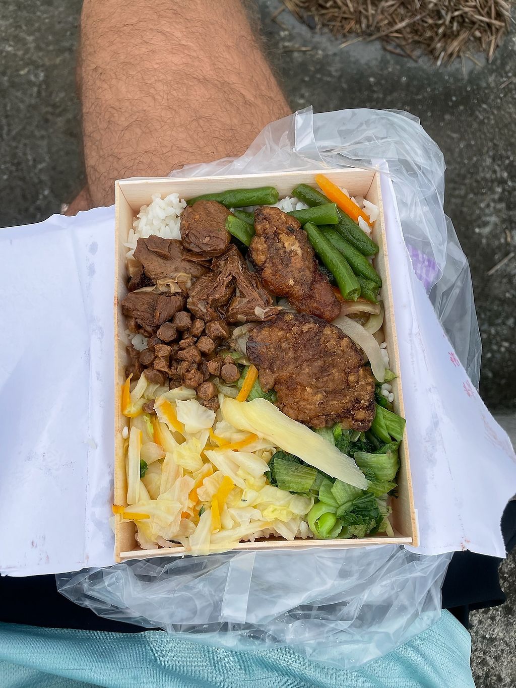 Picked up such a beautiful little wooden bento box from here for lunch whilst cycling. It had rice, lots of veggies and some kind of protein/mock meat. Delicious and filling for an excellent price