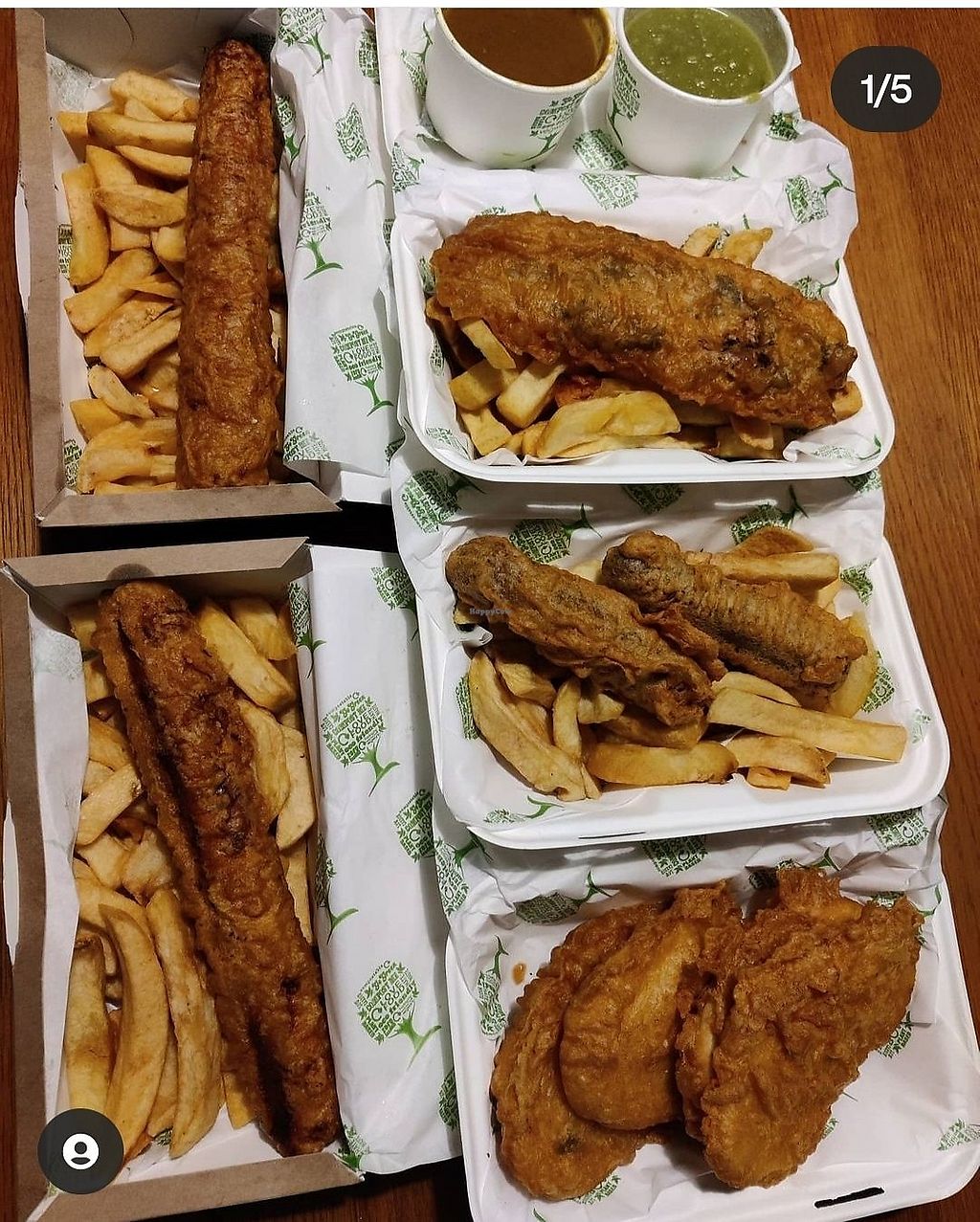 Vegan fish and chips delivery est. 2021. Collection can be booked via UberEats. Also available through Deliveroo. Serves battered tofu fish, battered banana blossom, vegan bratwurst, and ‘spam’ fritters. Relocated from Unit 28, 1 Dark Lane. Reported closed July 2022.