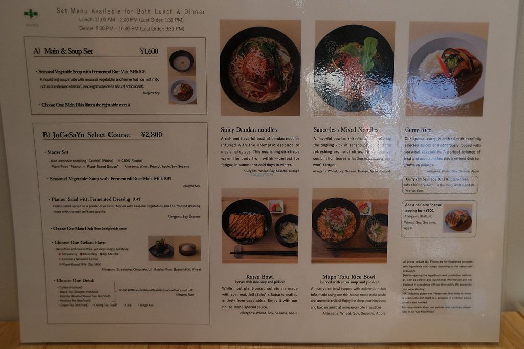 I was excited to see a vegan restaurant that also had gluten-free options (tempura and curry). However, the cooking utensils as well as oil are used for both gluten-free and wheat. Unfortunately, I had to leave without getting to try the food as I have to avoid cross-contamination.