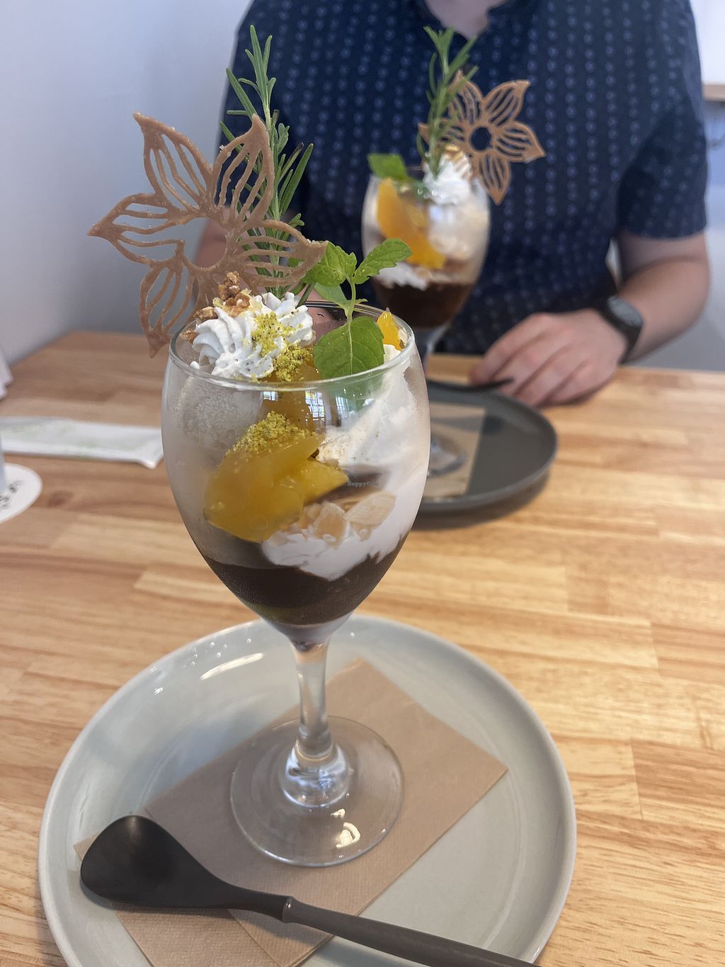 Everything at JoGeSaYu was exceptional. I’ve already been two times in as many days. The staff are friendly and welcoming. The menus had English descriptions of the items. Theh had nonalcoholic options in their drink menu and I enjoyed trying the non alcoholic sparkling rosè in their beautiful glasses. I ordered the Mini Teppan Okonomiyaki, Agedashi Tofu and the Karaage feom the À la carte menu. They were all so flavorful. I ordered the mapo tofu rice bowl as my main course, it was delicious, although it was almost too hot spice wise for me… but it gave me an excuse to order the strawberry chocolate ice cream parfait to cool my mouth down, which was decedent. I couldn’t resist also trying the Setouchi Lemon Cake, it was fresh and creamy and positively picture perfect.