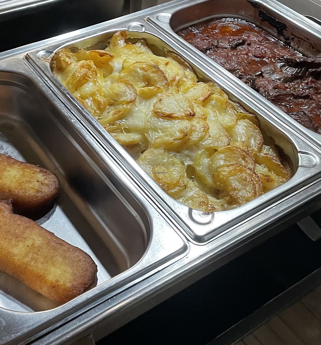 Serves meat, vegan options available. Austrian restaurant offering a vegan breakfast plate as well as spinach dumplings with homemade chutney, pasta, salds, and soups for lunch. Also has oat milk for coffee. Open Mon-Sun 09:00-17:00.
