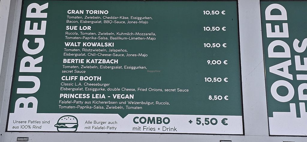Serves meat, vegan options available. Small burger joint serving house-made burgers. The menu features one clearly labelled vegan burger. The other burgers can be made vegetarian by substituting the burger patty. Open Mon-Sat 10:00-20:00. Closed Sun.
