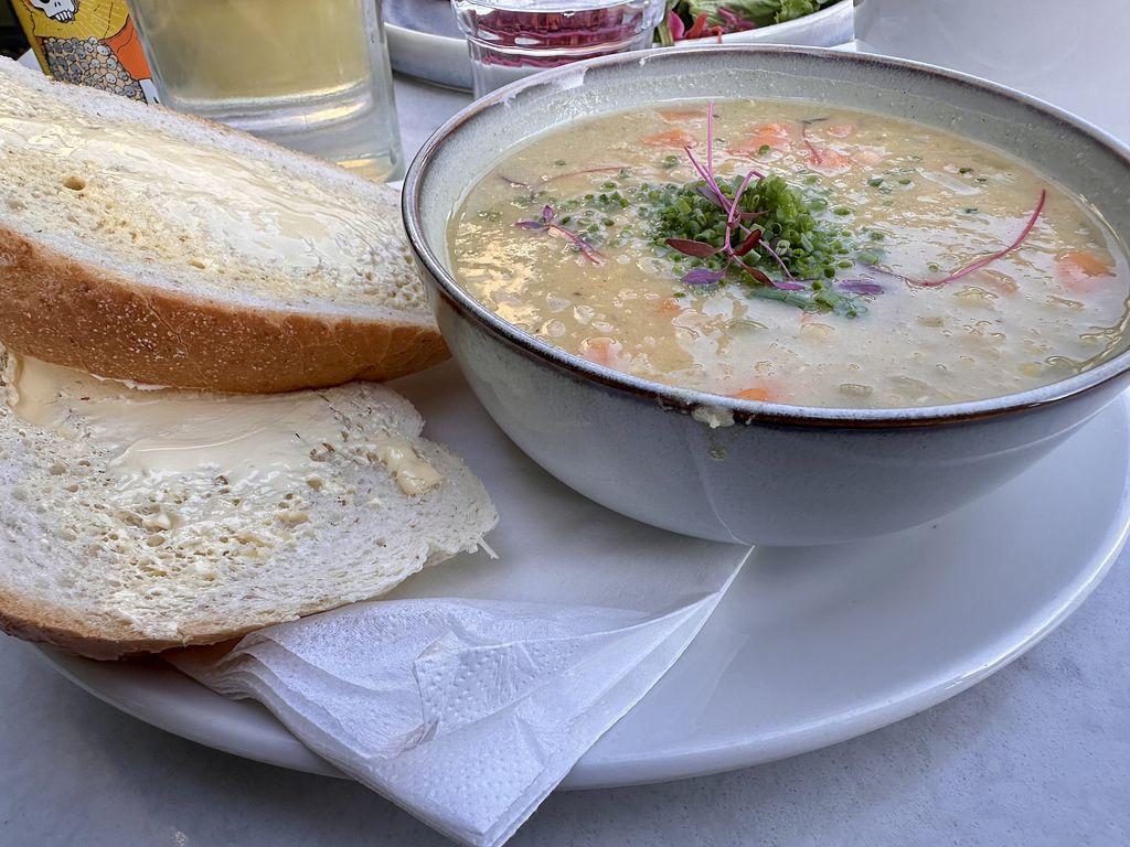 This charming cafe is inside the The Botanical Gardens, offering indoor and outdoor seating. They have a separate vegan menu. I chose from the specials board, having an oat banana chair and spiced chickpea & lentil soup, both of which were delicious!