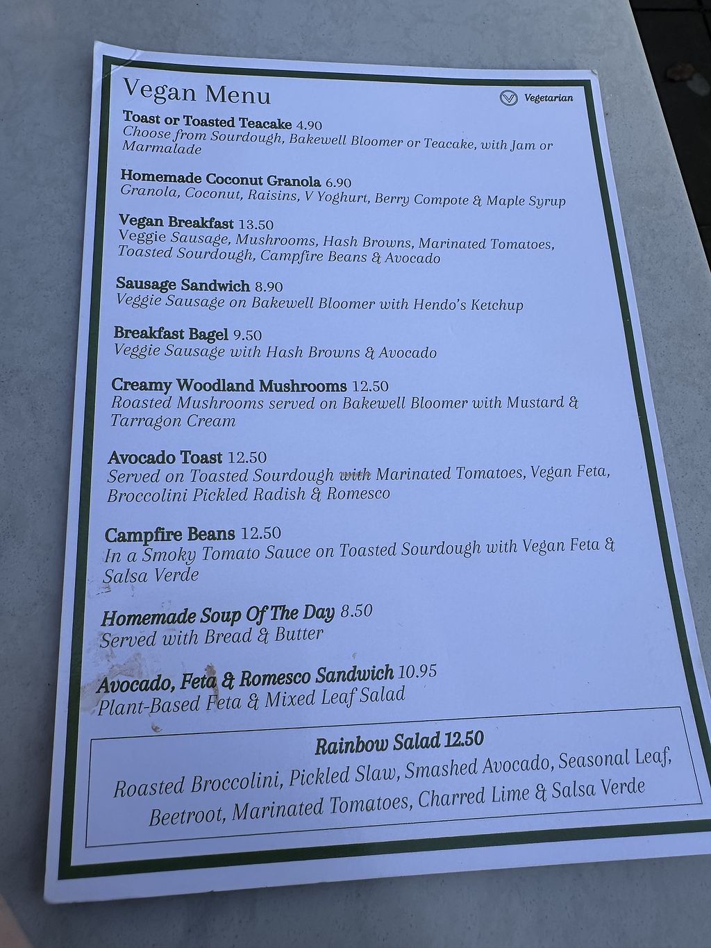 We visited for breakfast/brunch but good looking menus for all meals. Separate vegan menu is a good size and full range of plant based milks for coffee, etc.