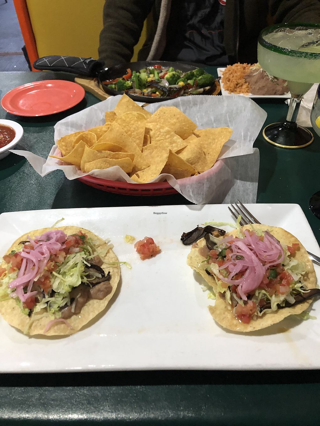 Several items on the menu are noted vegetarian. Asked the waiter nicely to help us enjoy a vegan dinner and I had 2 delicious portobello tostadas and my husband had vegetable fajitas with broccoli, corn, peppers, and onions. Paired with a lime mock margarita and chips and salsa, we had a lovely meal