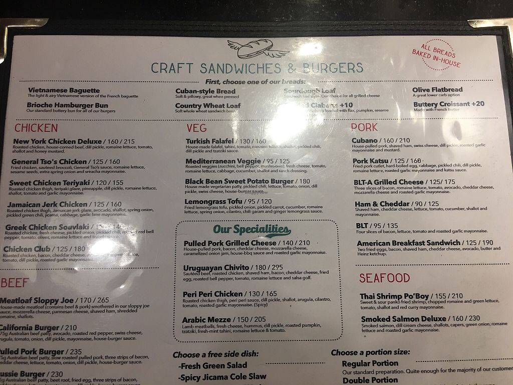 Sandwich and burger menu