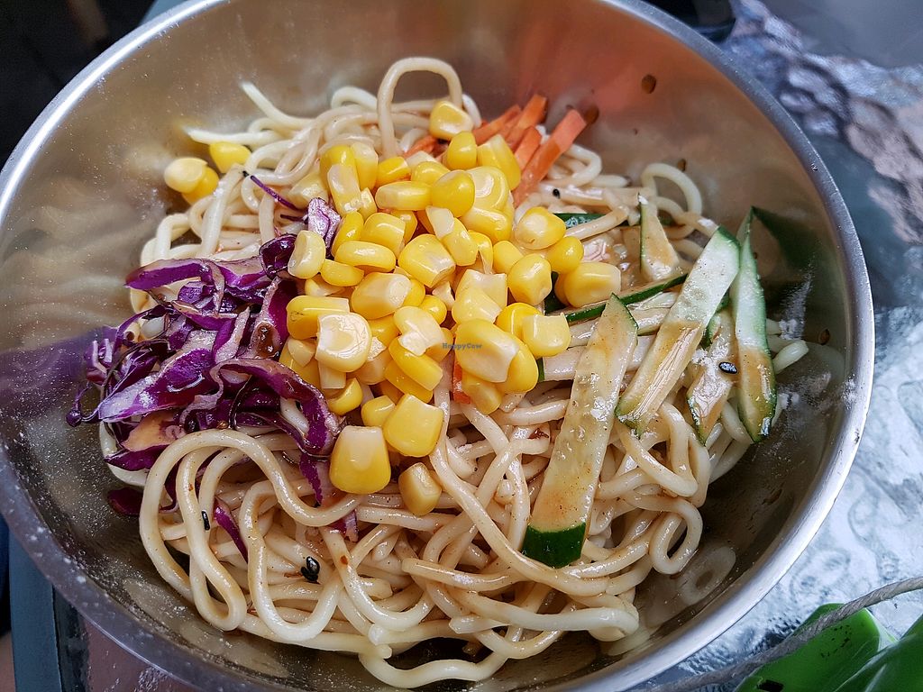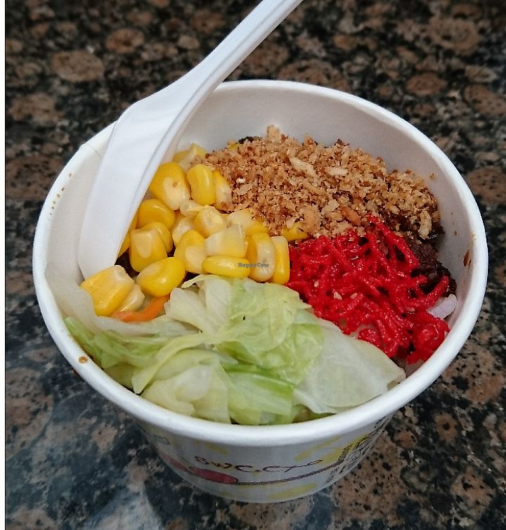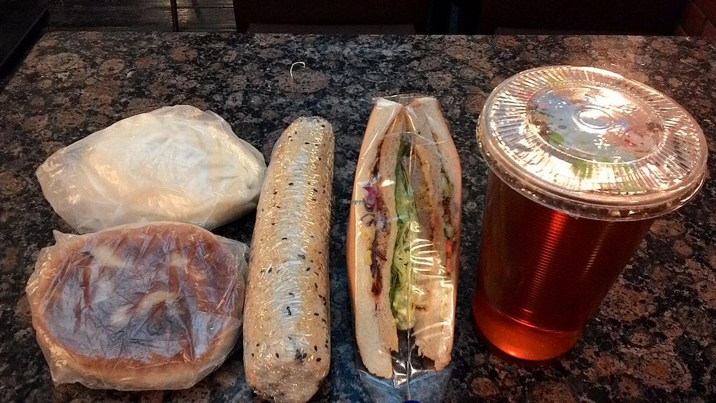Teriyaki Burger (soy) with lots of salad vege and the best softest whi…