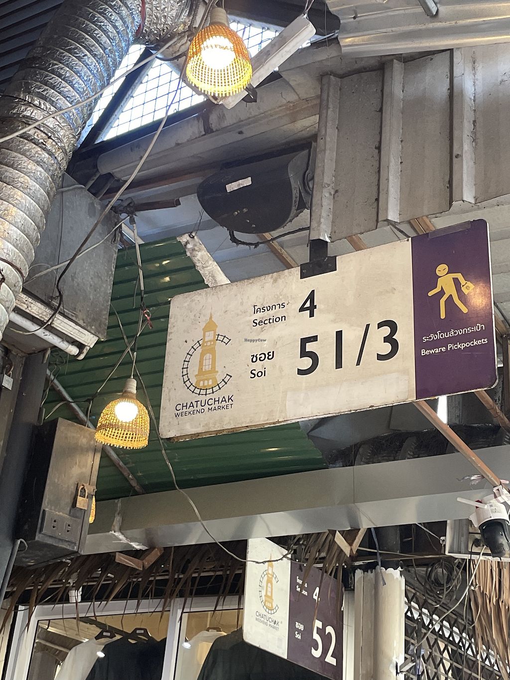 Serves meat, vegan options available. Restaurant located in the Chatuchak market, serving Thai cuisine with vegan options. Recommended vegan dishes include pad thai without egg, rice with vegetables, and laad. Situated in the food area, aisle four, section 51/3, near the vintage clothing zone. Previously listed as vegetarian, but reported January 2026 to serve meat. Open Sat-Sun 9:00am-6:00pm.
