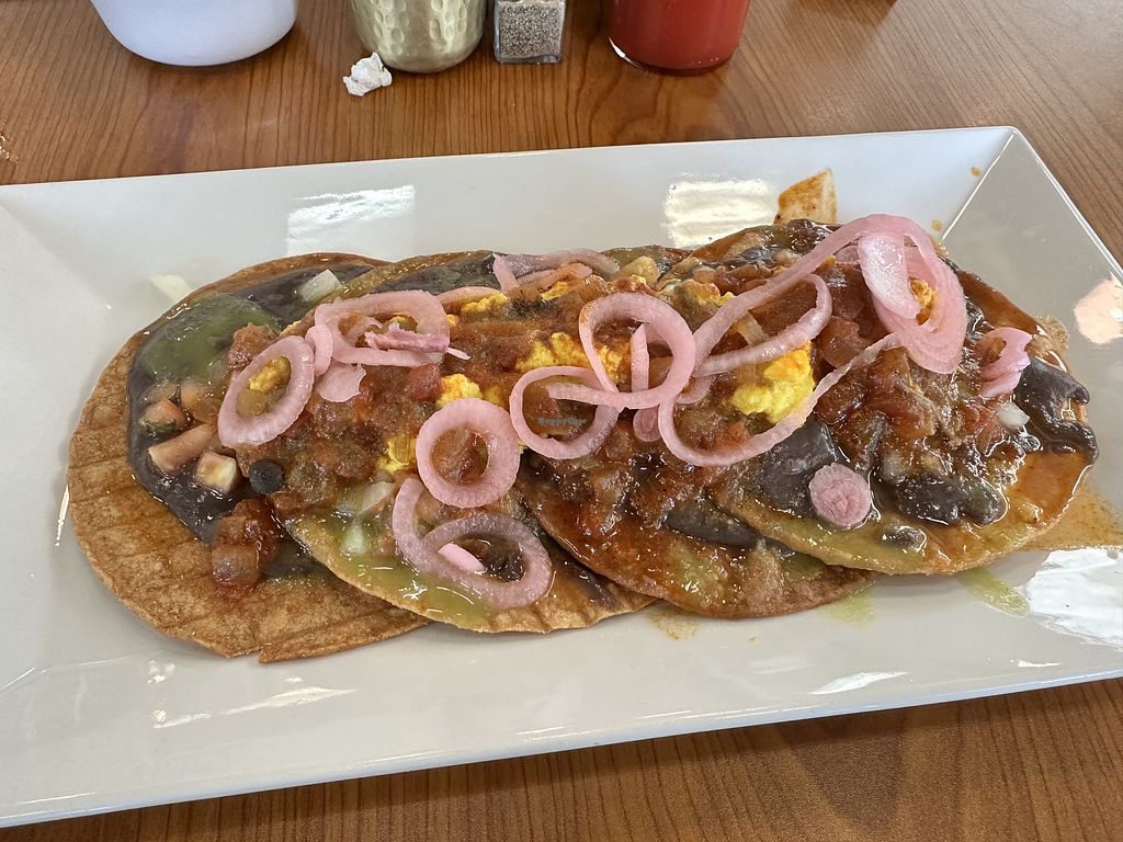 The vegan huevos were pretty good. The tortillas have a nice crisp to them. Their drip coffee was also quite nice. It felt like the meal could use a side to be more filling, and better justify the price. Also, no vegan options for dinner which is sad.