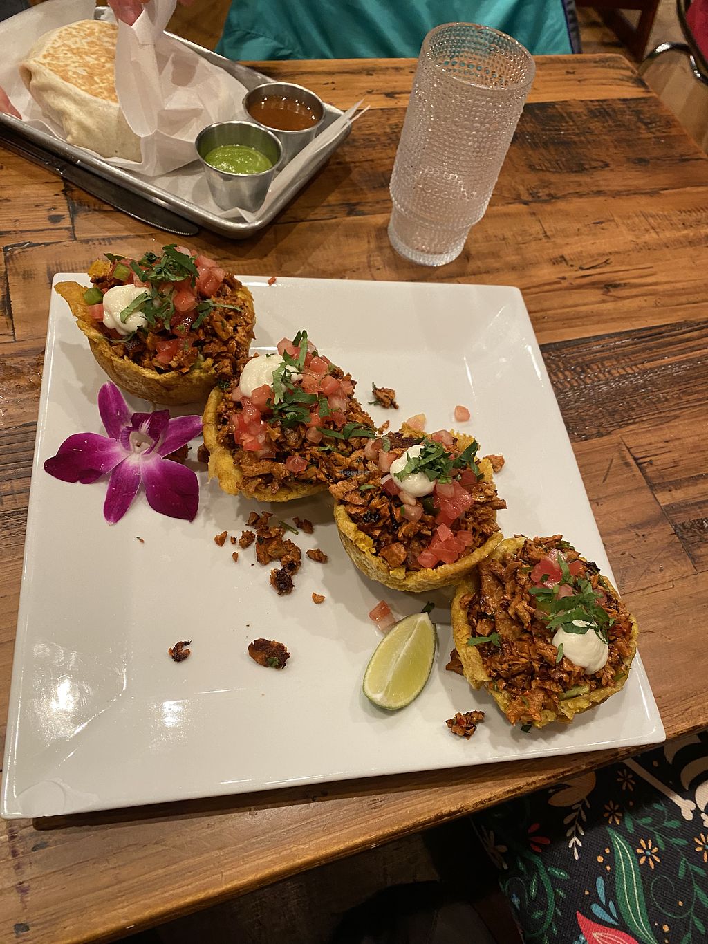 Serves meat, vegan options available. Honduran and Latin American restaurant with separate vegan menu. Example offerings include nachos, burritos, tacos with vegan cheese, fried plantains and more. One of two locations. Open Tue-Thu 4:00pm-9:00pm, Fri-Sat 4:00pm-10:00pm, Sat-Sun 10:00am-2:00pm. Closed Sun-Mon.