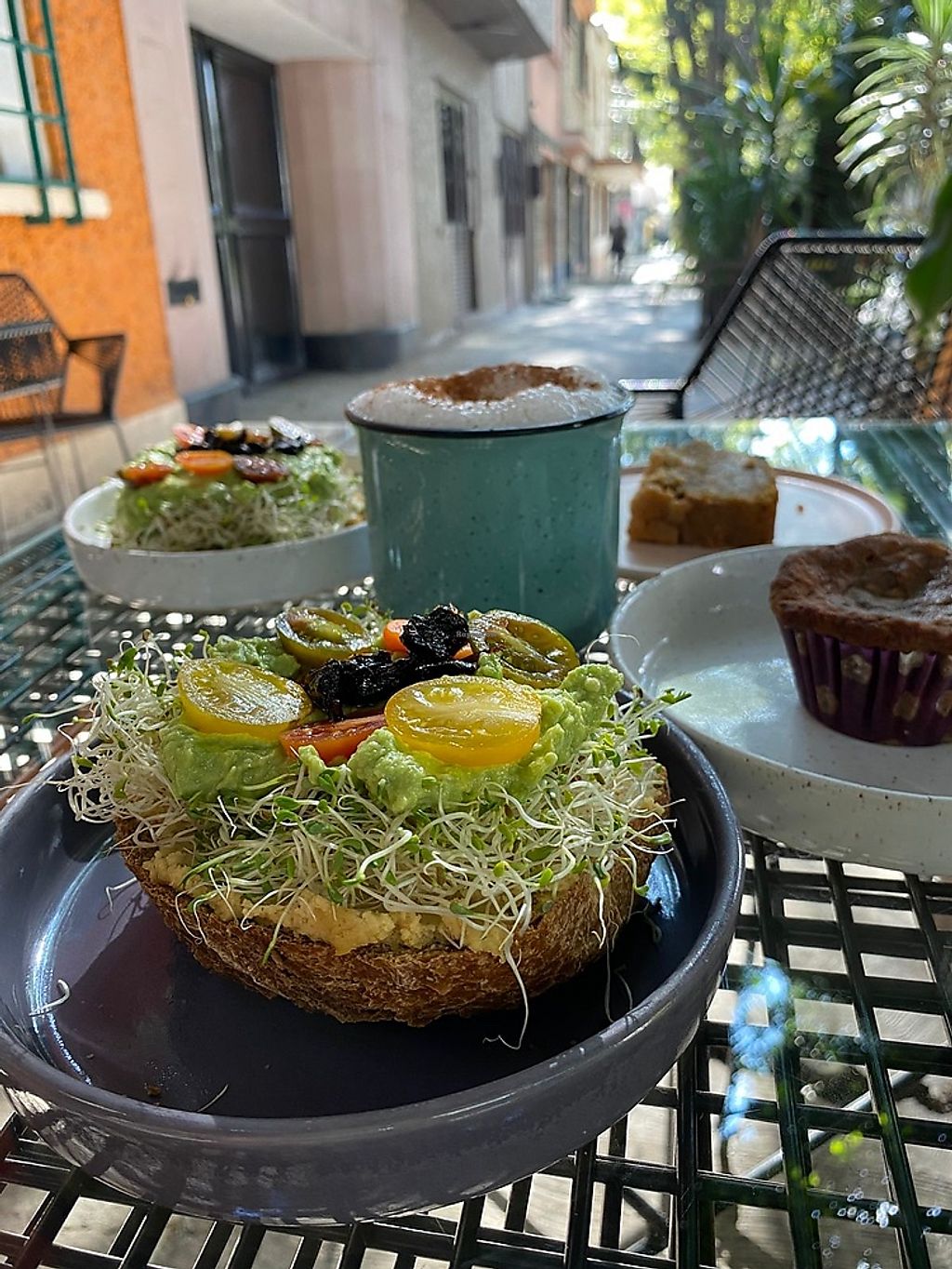 Toast de Hummus y guacamole 🥑 y capuchino con leche de almendras artes…