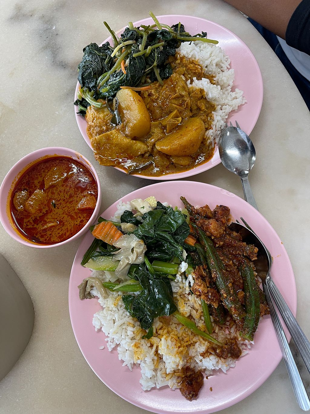 Food was okay. No one spoke English so you just grab a plate and fill it with food. Once you get to the counter the man will guess a price which was about 6rm per plate for us.