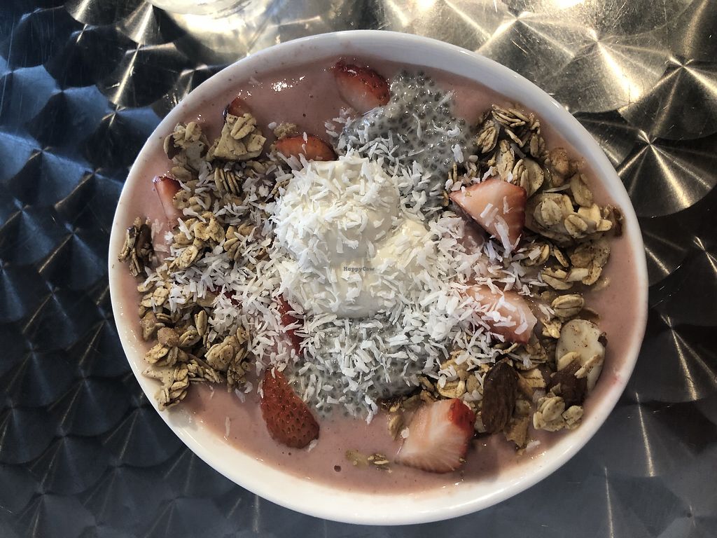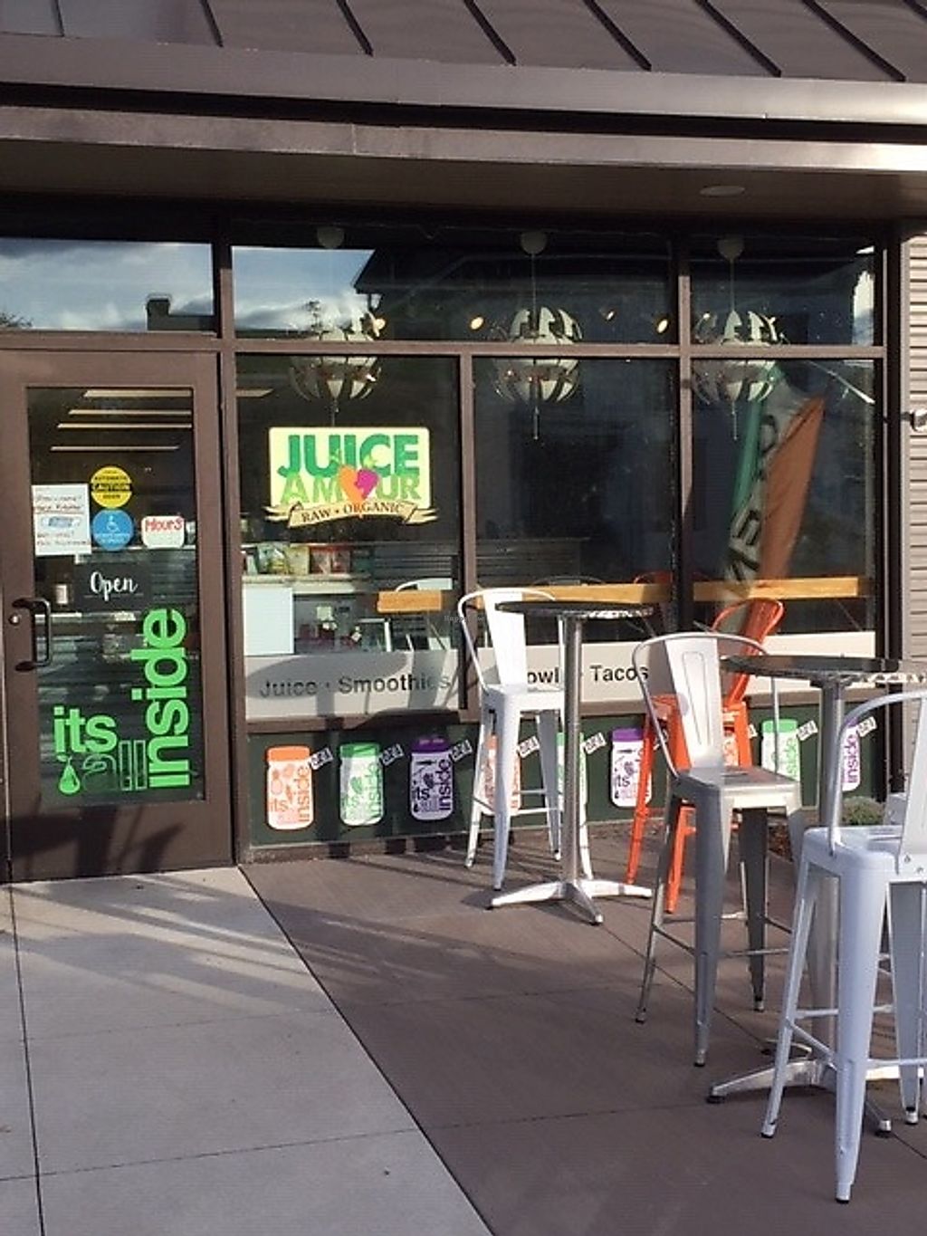 Organic juice and smoothie cafe offering drinks and light food including acai, chia puddings, nut milks, salad with your choice of ingredients, and daily soup. NOTE: Use of bee pollen/honey reported April 2021. Reported closed March 2022.