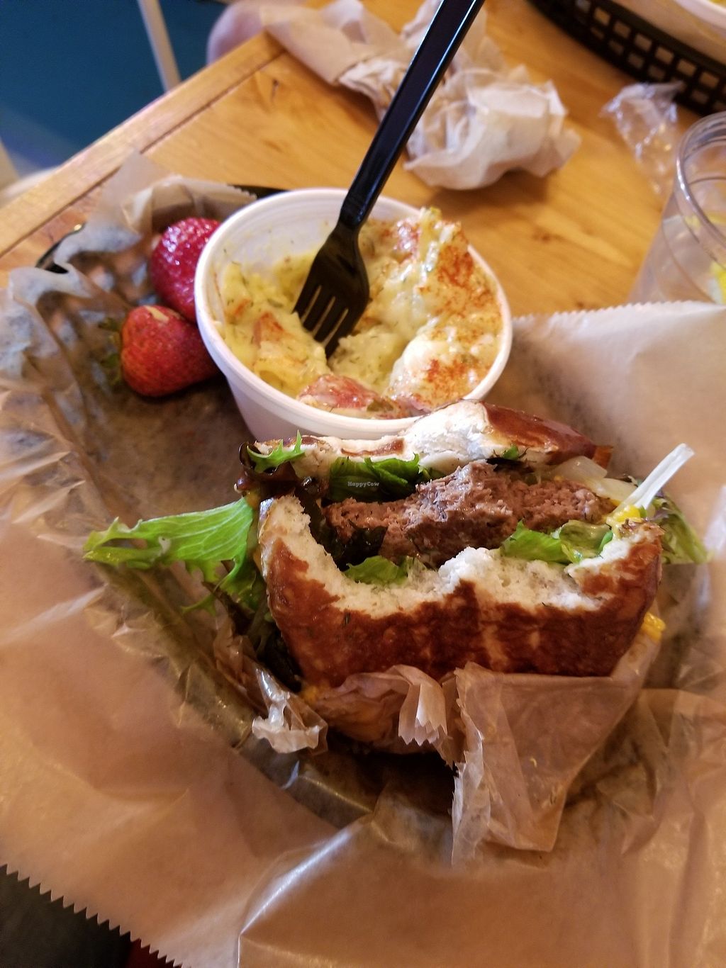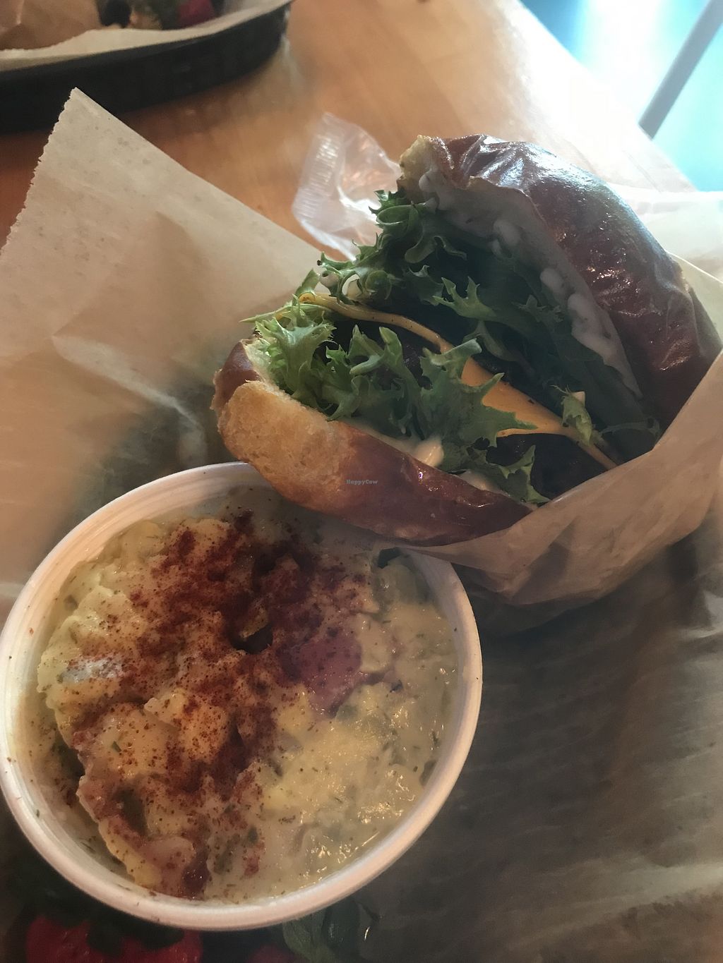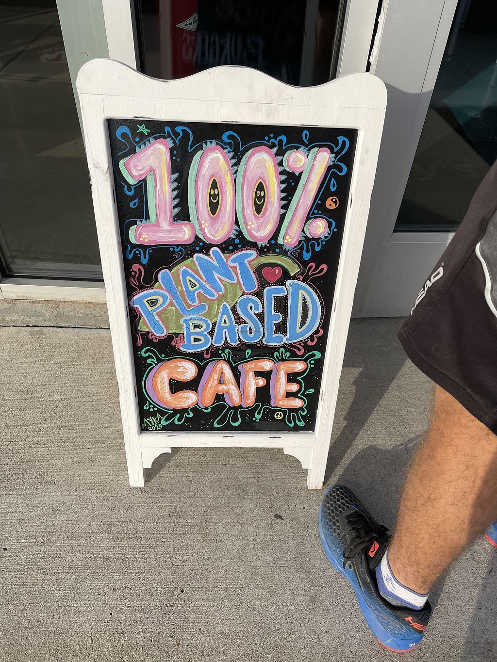 Very small space but it's the only fully vegan game in town, and they do offer the Impossible Burger so we stopped in after a run. We split a burger, baked beans, and potato salad. The food was pretty good...but our sides were served in styrofoam. That's a huge turnoff for us. If you're not going to have regular dishes at least go compostable.