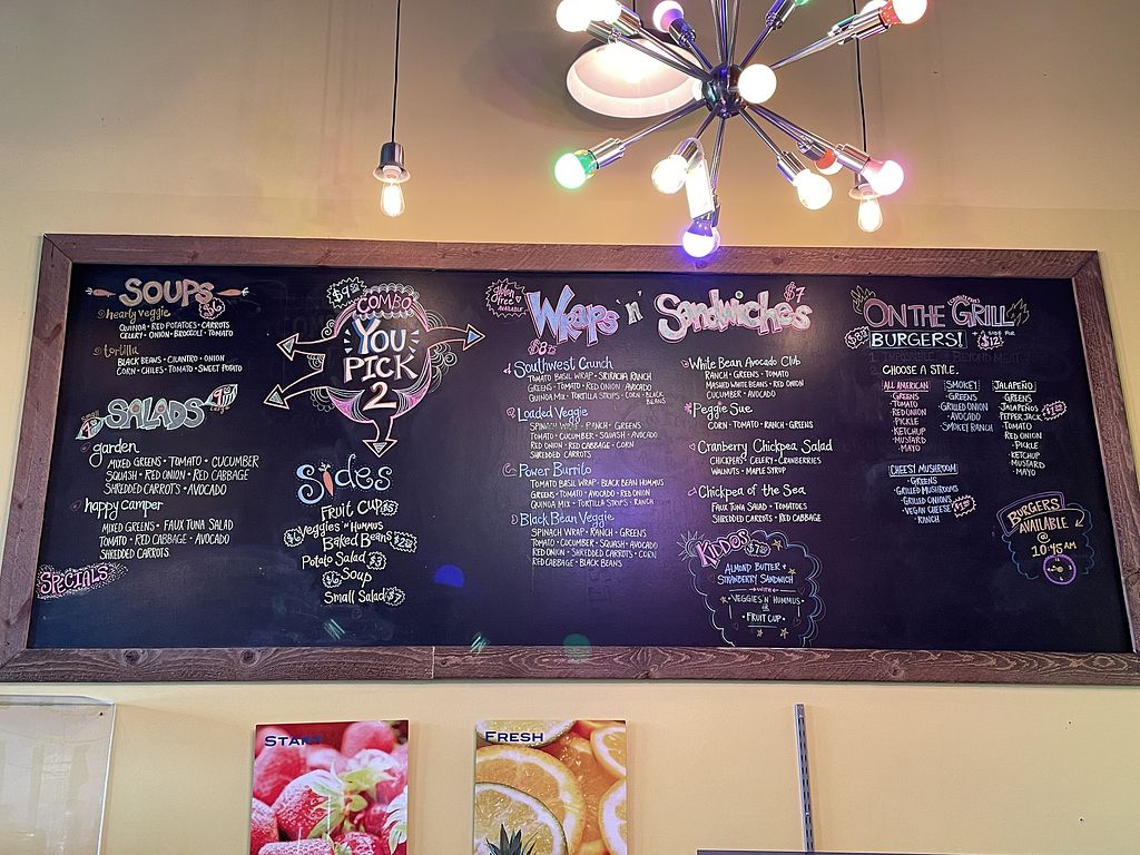 Vegan cafe offering daily specials such as the Impossible Burger, power burrito and jacked-up bbq sandwich. Daily soups include hearty veggie and sweet potato tortilla. Daily sandwiches or wraps include white bean avocado, cranberry chickpea salad, black bean veggie wrap and many more. Also has salads and sides. Reported closed December 2023.