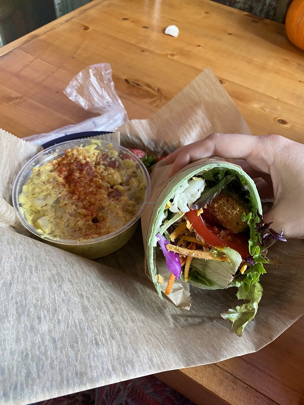 Accessible vegan spot near MTSU. I got the white bean wrap. It was good but not amazing. The ranch dressing was the only real source of flavor and it was light. Which is okay I don’t really like ranch. The wrap was very light, crisp and fresh tasting.