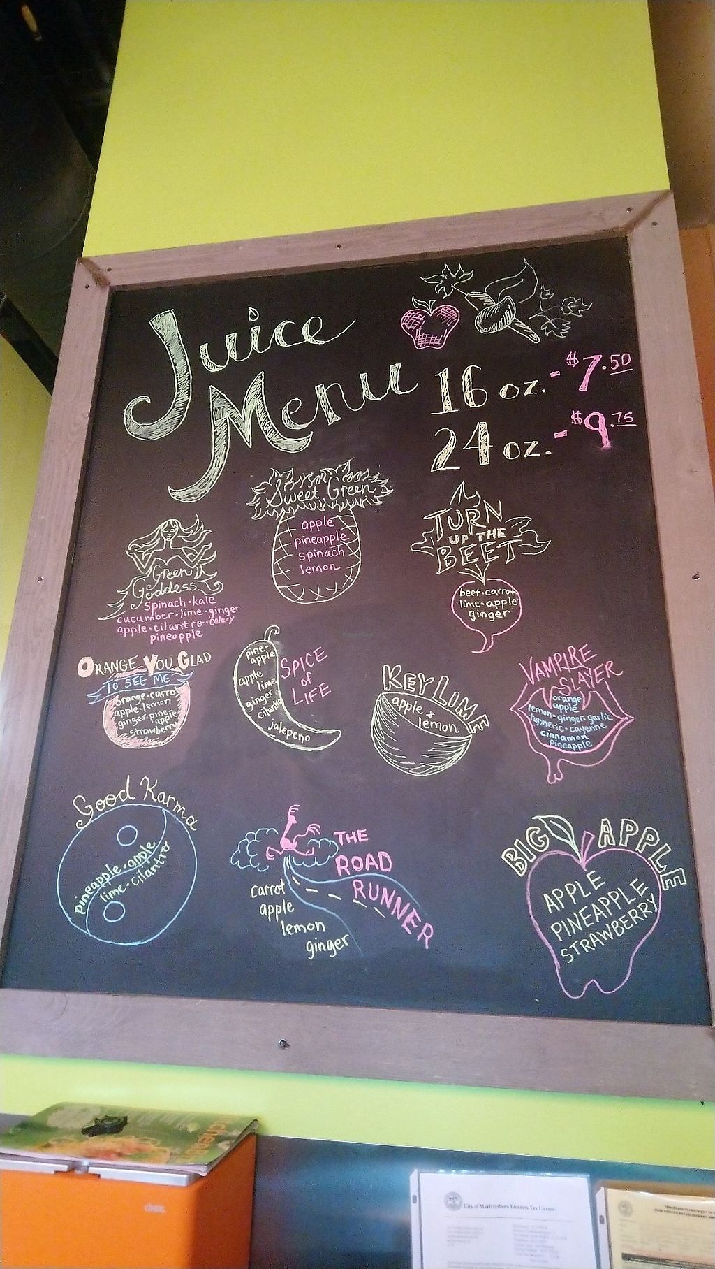 Cons: Juices are expensive., Menu rotates, so they may miss your favorite dish