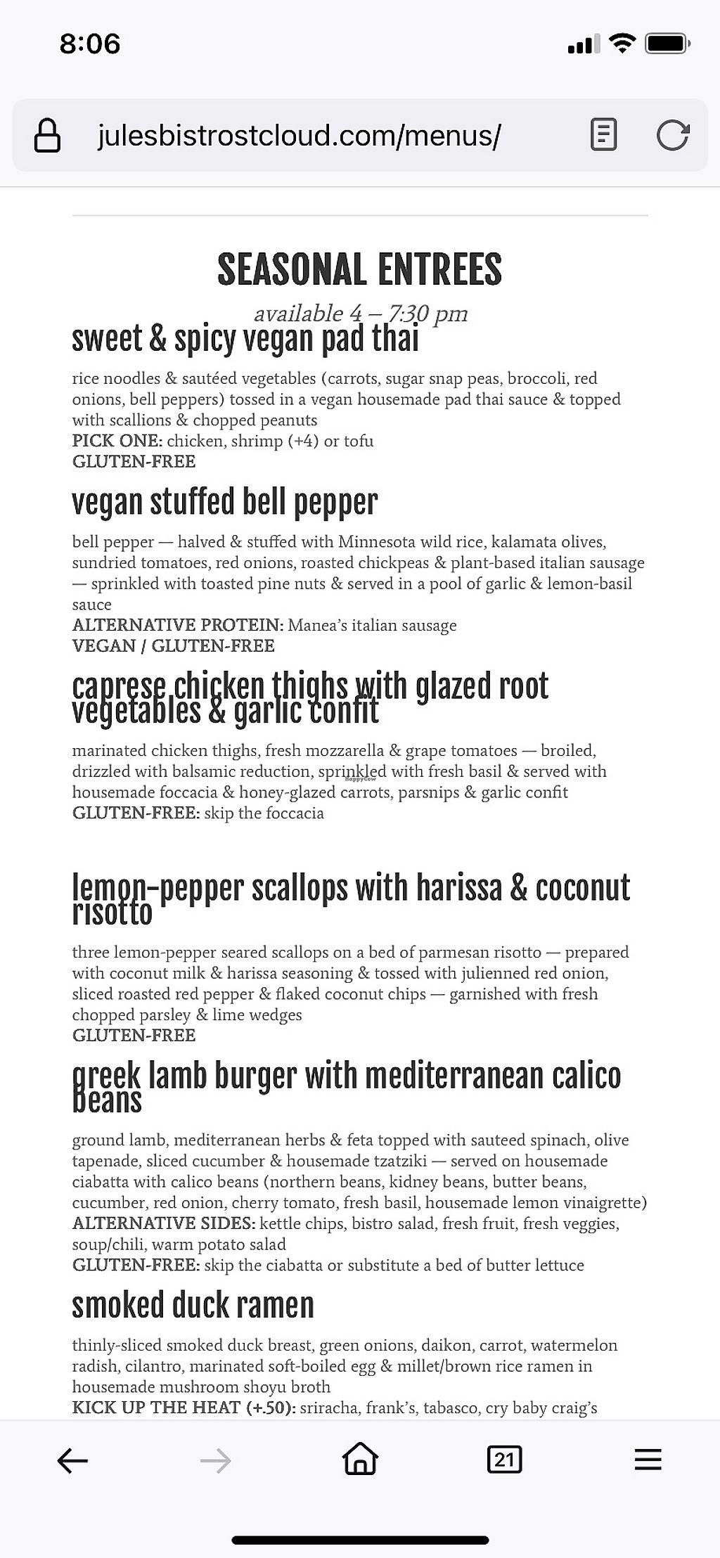 We’ve enjoyed the creative and delicious vegan options at Jule’s since moving to St. Cloud in mid-2022.