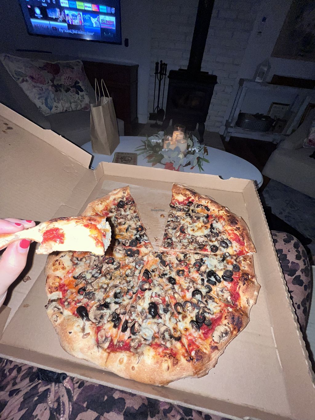 Create your own pizza (soyrizo, mushroom, artichoke, cherry tomato, ve…