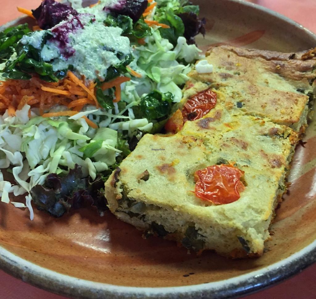 We stopped in for a late lunch, just wanting to fill up a little before dinner. We ordered the veggie quiche with yam salad and the kitchari stew. We'd seen the quiche cooling on the table behind the counter and it tasted as good as it looked. Dirk really enjoyed the kitchari which came with a buckwheat crepe. Both items were tasty, but definitely on the healthy side. One staff was particularly friendly and chatted with another customer during his break, leaving us with the other staff who was just decent. Overall, a nice experience.