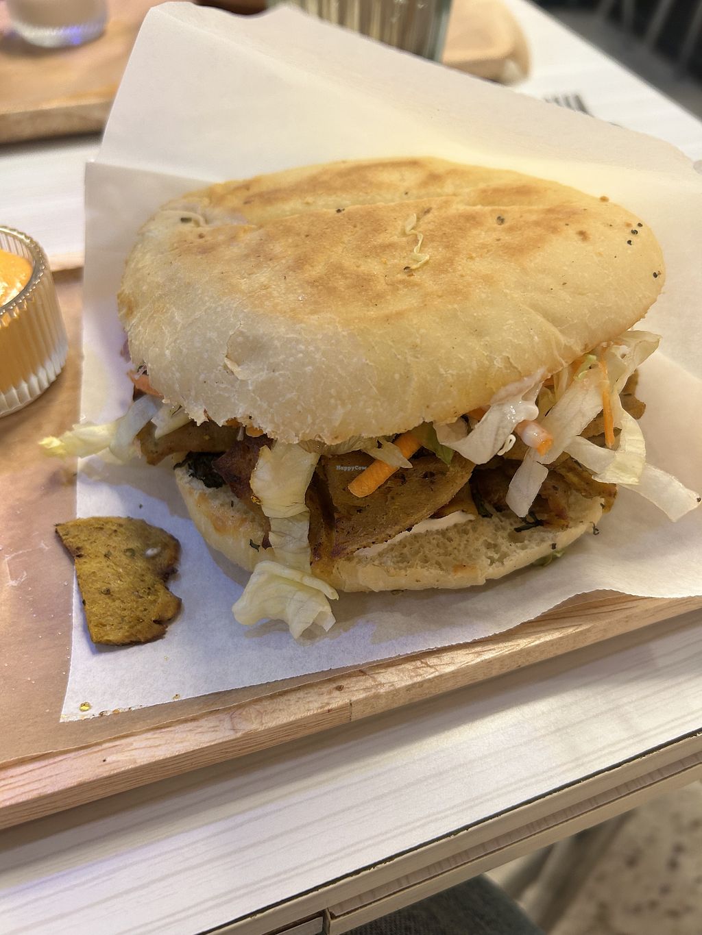 I checked out a new vegan street food spot located in the same space as Aloe Vega, an exciting way to mix things up. I went for the jackfruit kebab, which was delicious, hearty, and fresh. However, the bread and wrapping paper didn’t quite hold up, so there’s some room for improvement there. I also tried the cauliflower ribs, which were absolutely spot-on, especially with their excellent pepper sauce. On top of that, the staff were super friendly, and the prices were incredibly reasonable for the quality and portion sizes.
