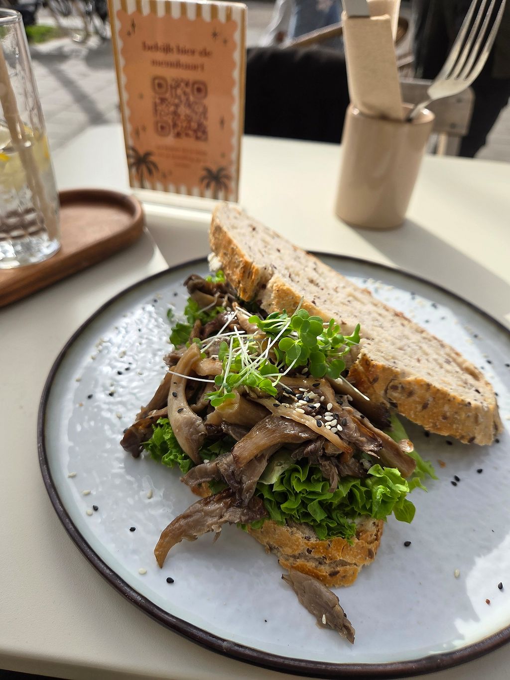 We had the pitta oesterzwam 13€ and sandwich kimchi tempeh 12€.
