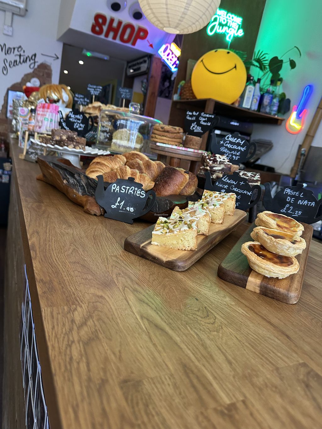 I stopped by for a toastie after seeing a “tunah” toastie on the menu. And it’s a really nice homely cafe, with a “living room” style back section, with open mic instruments setup - which the guy said they do at evenings sometimes - and a vintage shop downstairs with clothing, old vinyls, and trinkets. But upstairs the cafe has all the drinks, lattes, smoothies, and juices you would want- and even cocktails for £7! The mains and sides are also great, with lots of toasties made fresh, and sides like mac & cheese, or soup etc. Then to finish off there’s a counter full of fresh vegan cakes, pastries, chocolate bars (both homemade artisan white chocolate, and Kit Kats). A really nice environment and very friendly guy running it and serving. I will be back for more relaxing snacks and drinks.