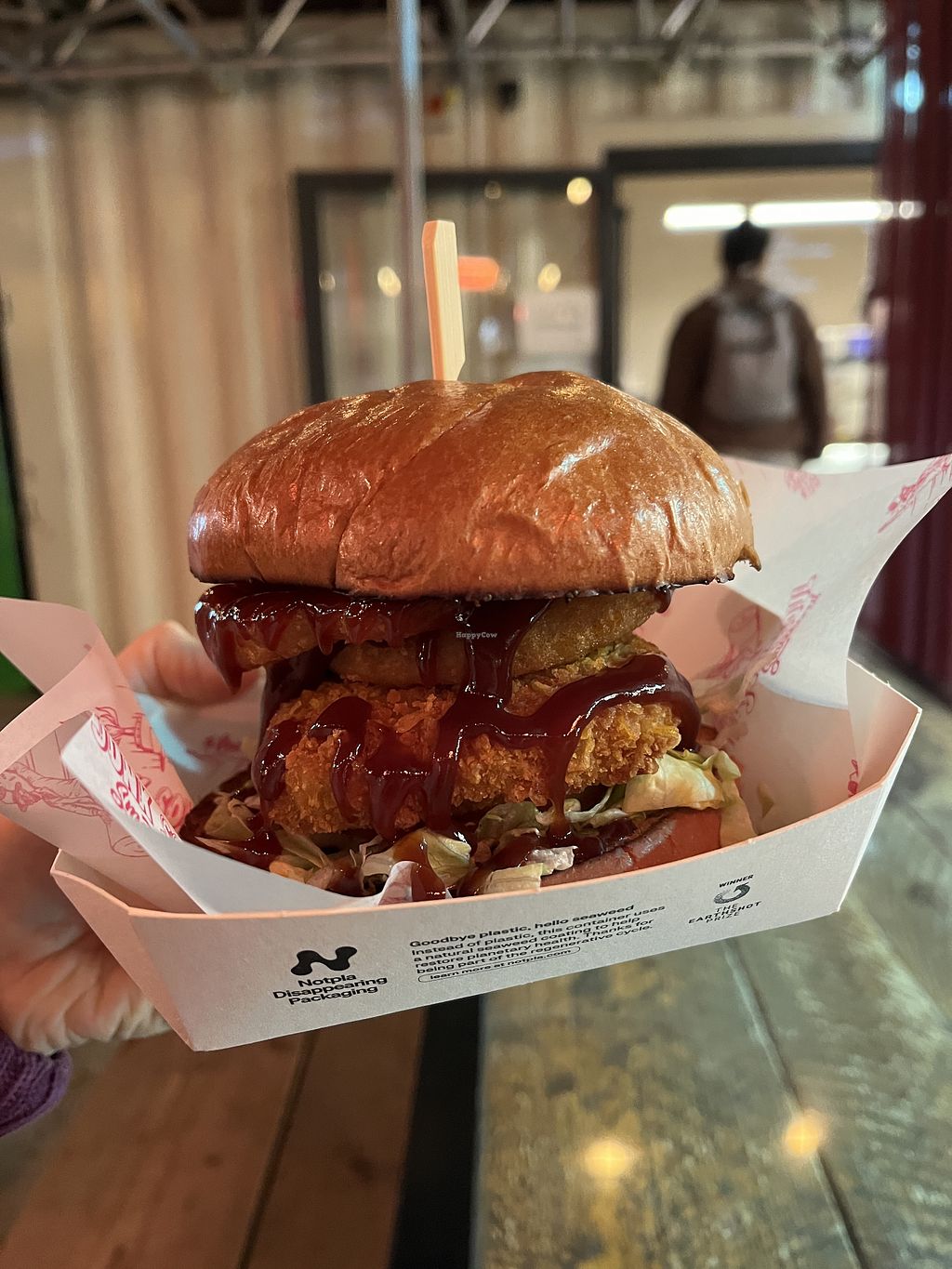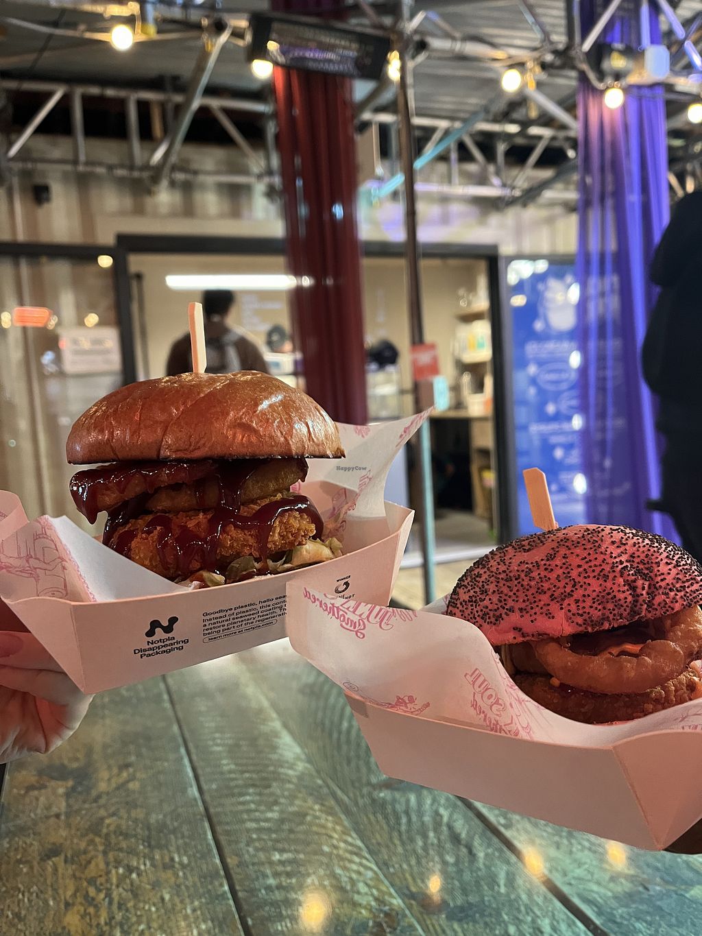 Great vegan burger in this food hall. The person who served us was alone to do everything so shout out for this !