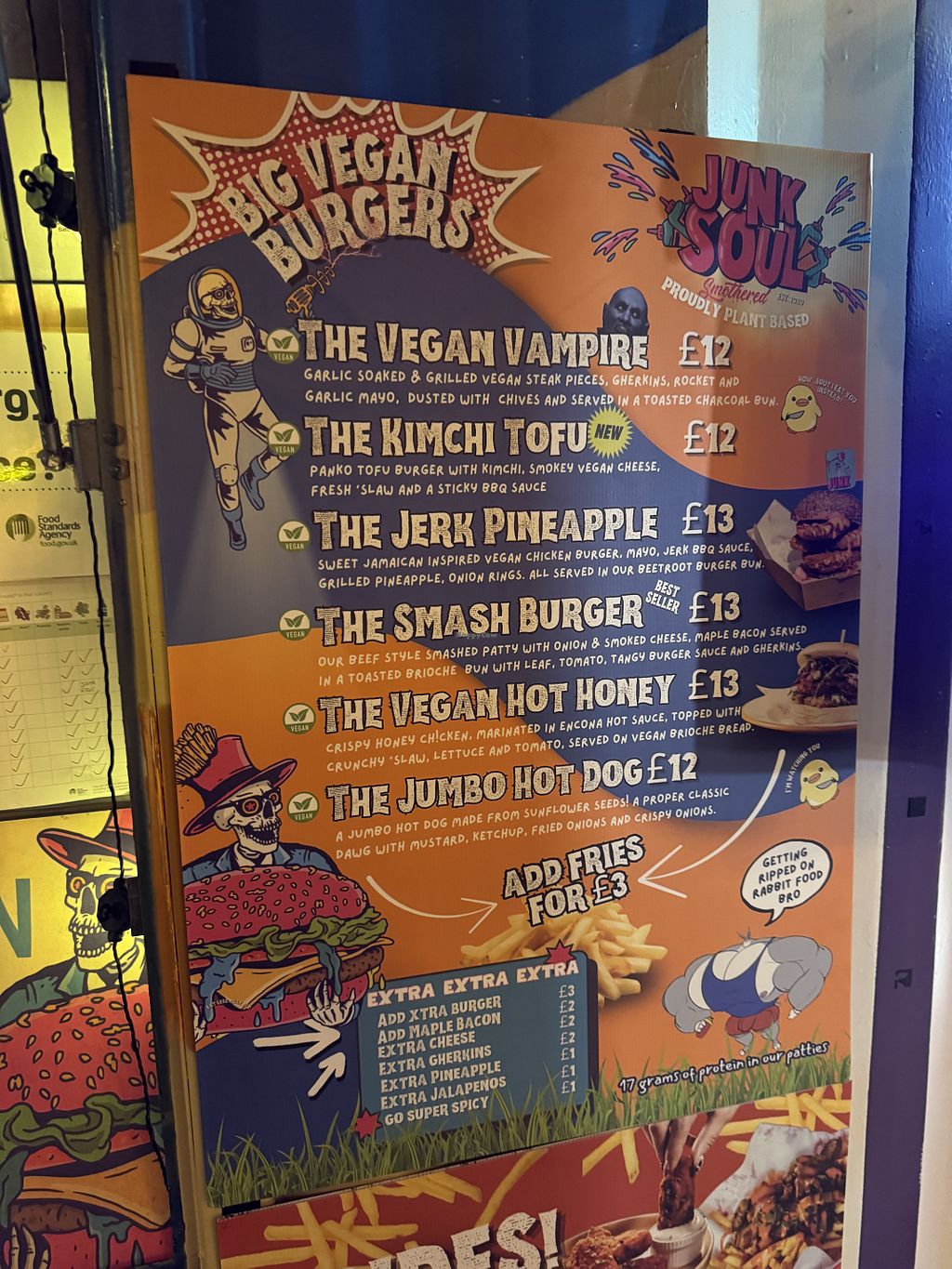 Pros: Fabulous food - moist and tasty, Great choice of junk food flavours, Probably the best vegan junk food we’ve had