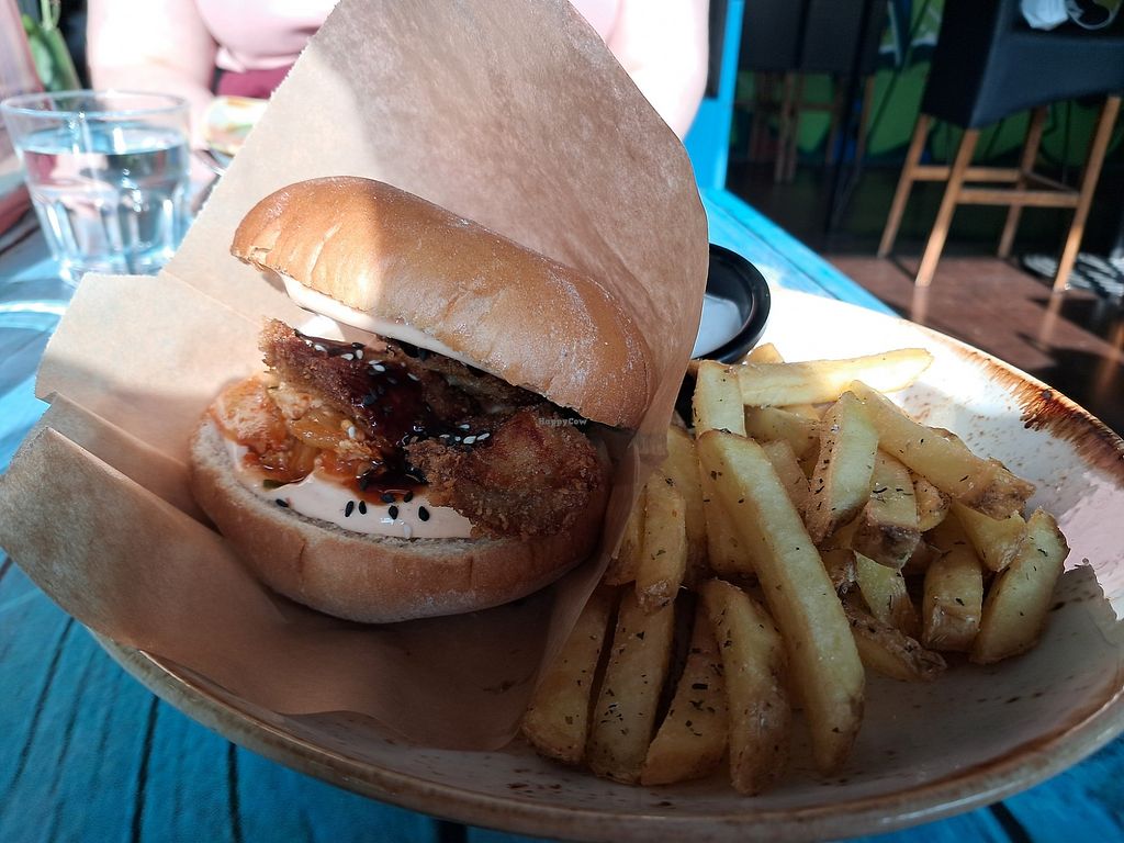 Croffle: vanilla oat ice cream between croissant waffles, berries, cho…