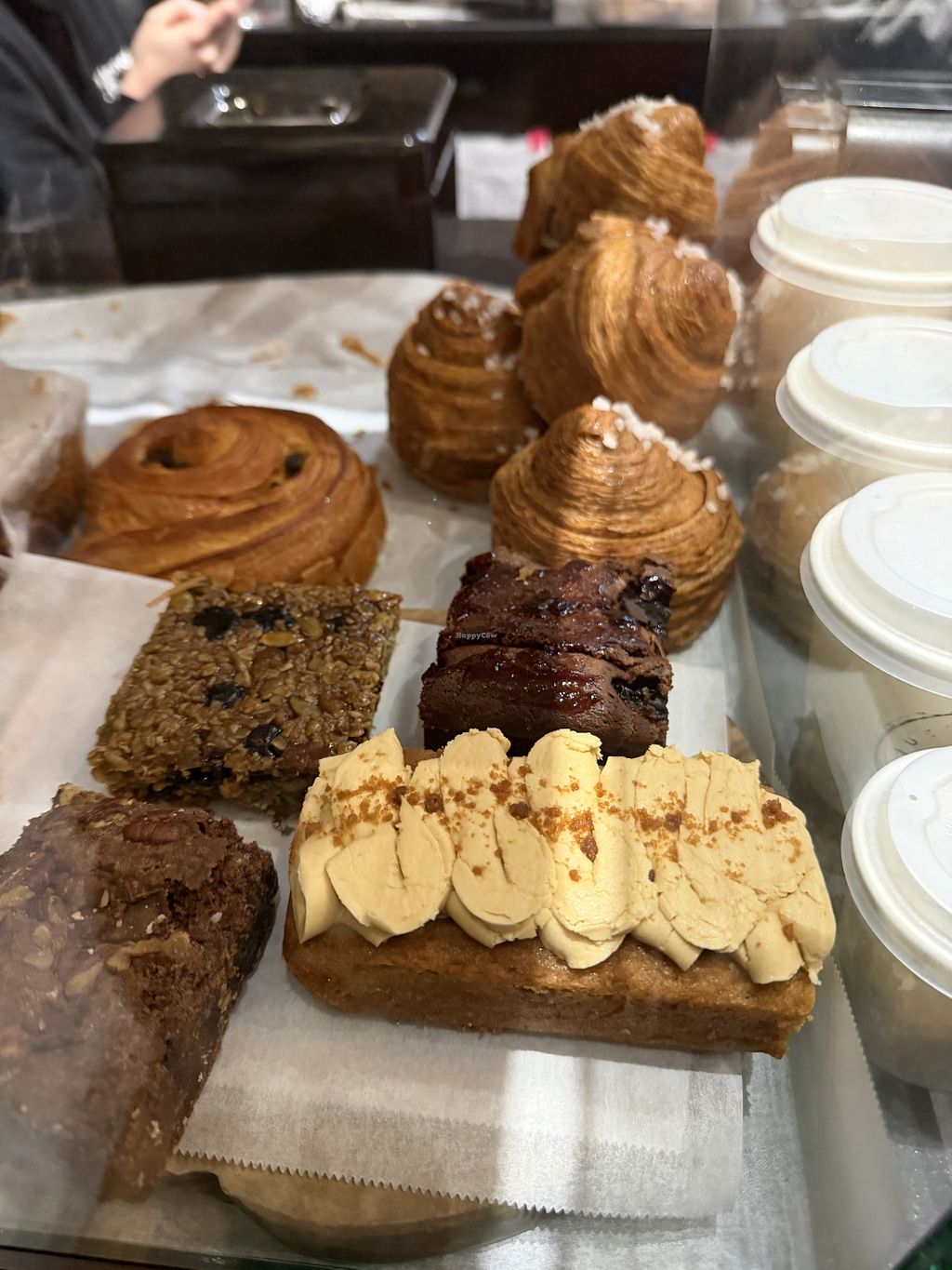 OK oat flat white. OK vegan sweet treats. They don’t clearly label any baked goods, so you have to ask what’s vegan each day.