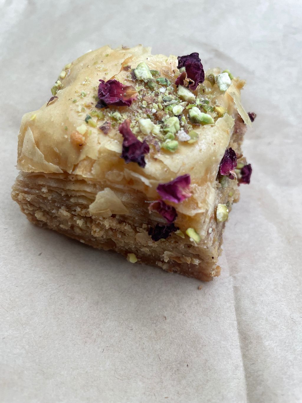 Enjoyed the harissa falafel pita. Vegan baklava was great too.