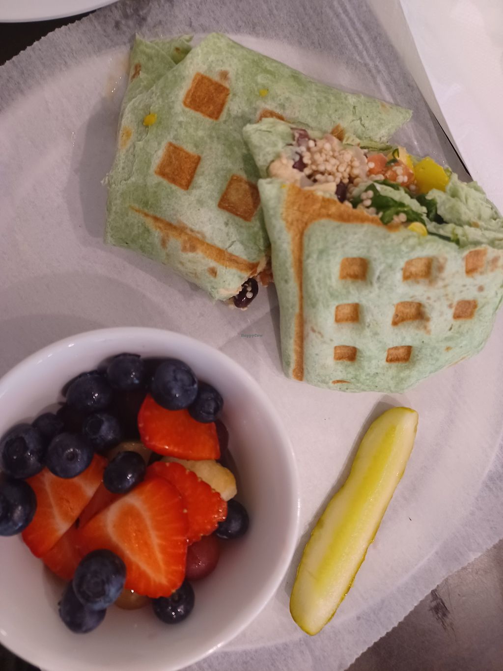 Coffee shop that does have 1 option, the quinoa wrap on a spinach tortilla, with a side of fruit. My husband and I both liked it.