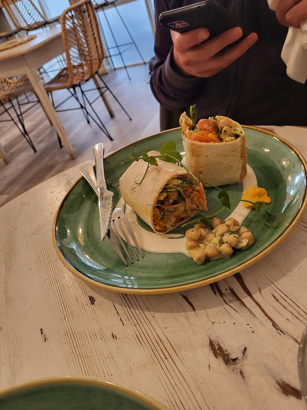 Whilst they serve eggs, everything else is vegan I had a smashed chickpea with vegan mayo open sandwich and an apple, celery, ginger and lemon juice. Both delicious.