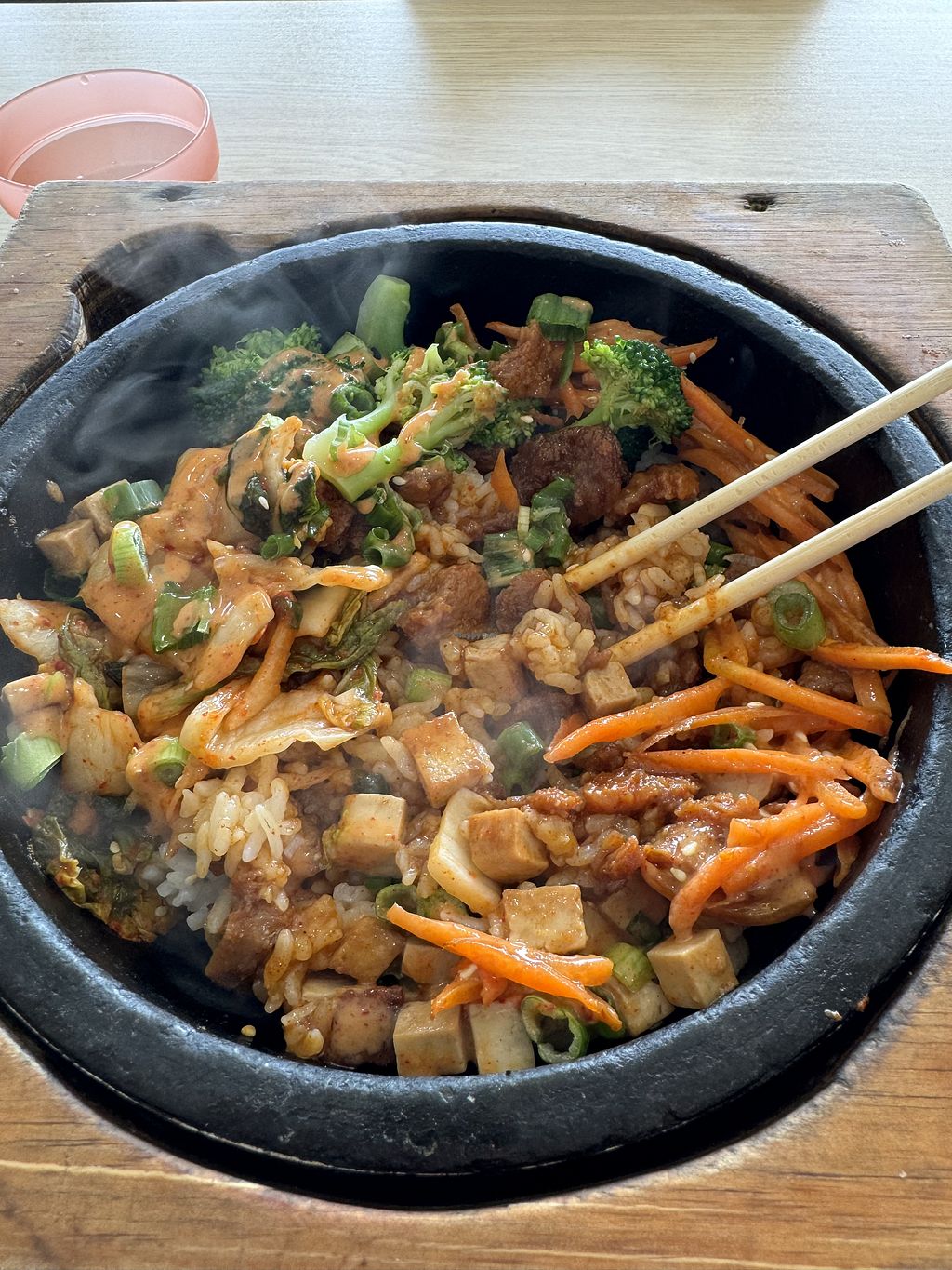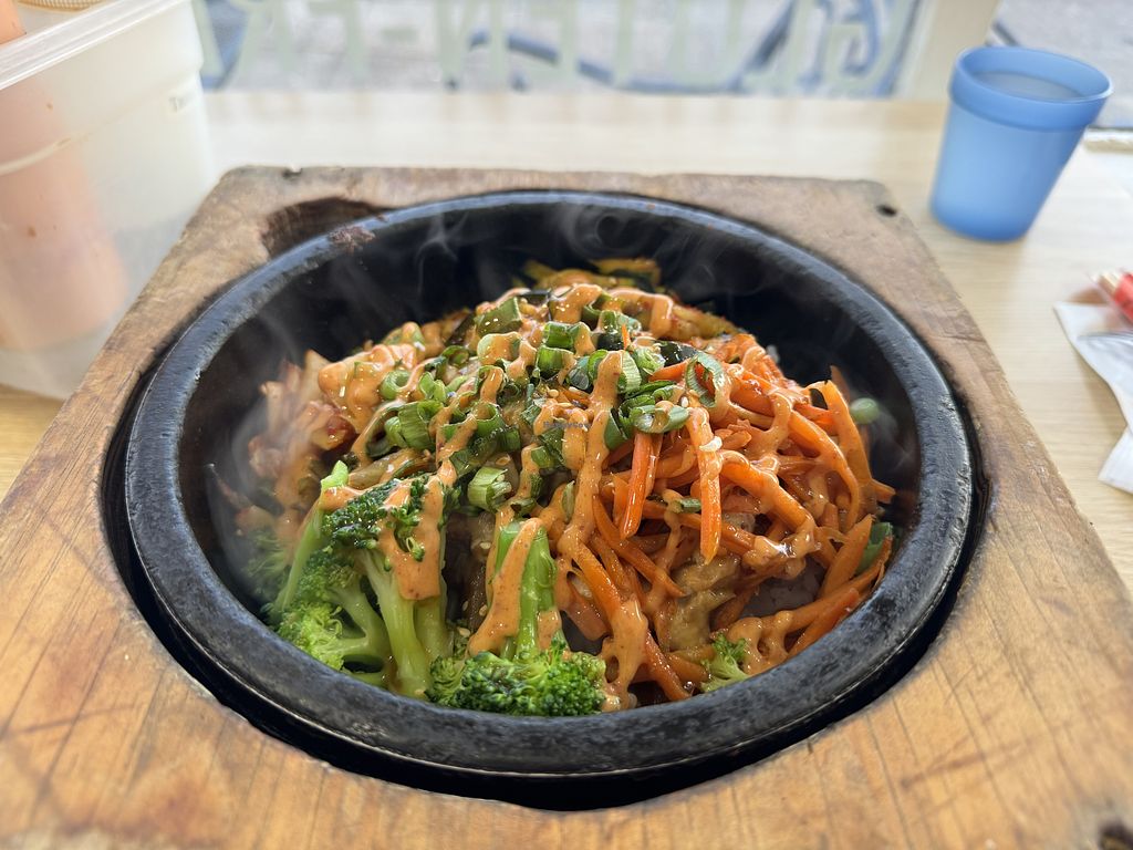 Read moreSimilar to Chipotle, you get to assemble your bowl with your choice of ingredients and they'll sizzle it right up in a pot before serving. I was thrilled at their vegan proteins, which includes tofu, mock chicken, mock beef, and jackfruit - all of which are marinated in their house sauce to give it extra flavor.