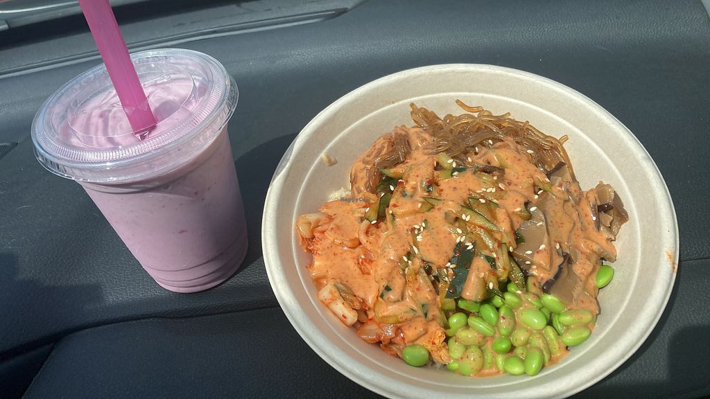 I would give over five stars if I could, unfortunately only fully vegan restaurants can get that. I’ve been here over 3 times now and it has been delicious and fresh every time, their kimchi is hands down the best tasting kimchi I have ever had. They have three delicious vegan meat options, coconut chili chicken being my favorite, and a selection of (almost, there is an option for eggs) fully vegan toppings. They also have DELICIOUS vegan shakes that I feel obligated to enjoy each visit. Definitely recommend to all vegans and even non vegans in the area!