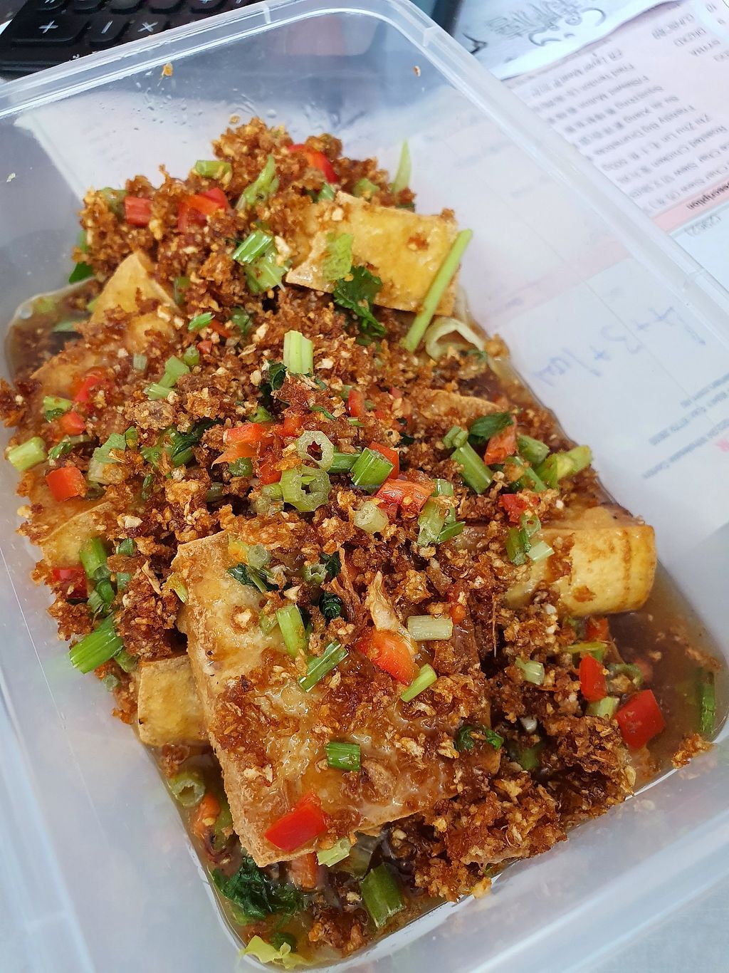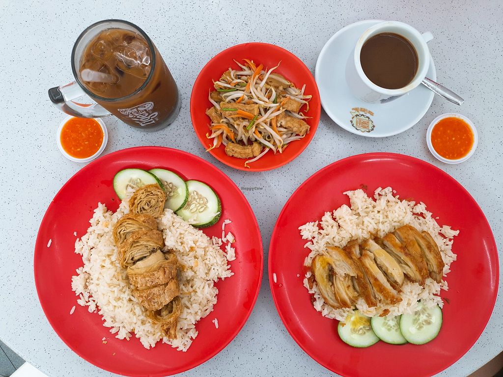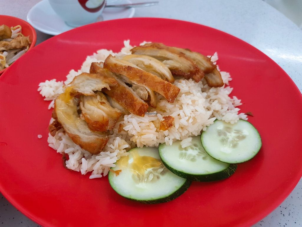 Vegetarian Roasted Chicken Rice with added curry vegetables