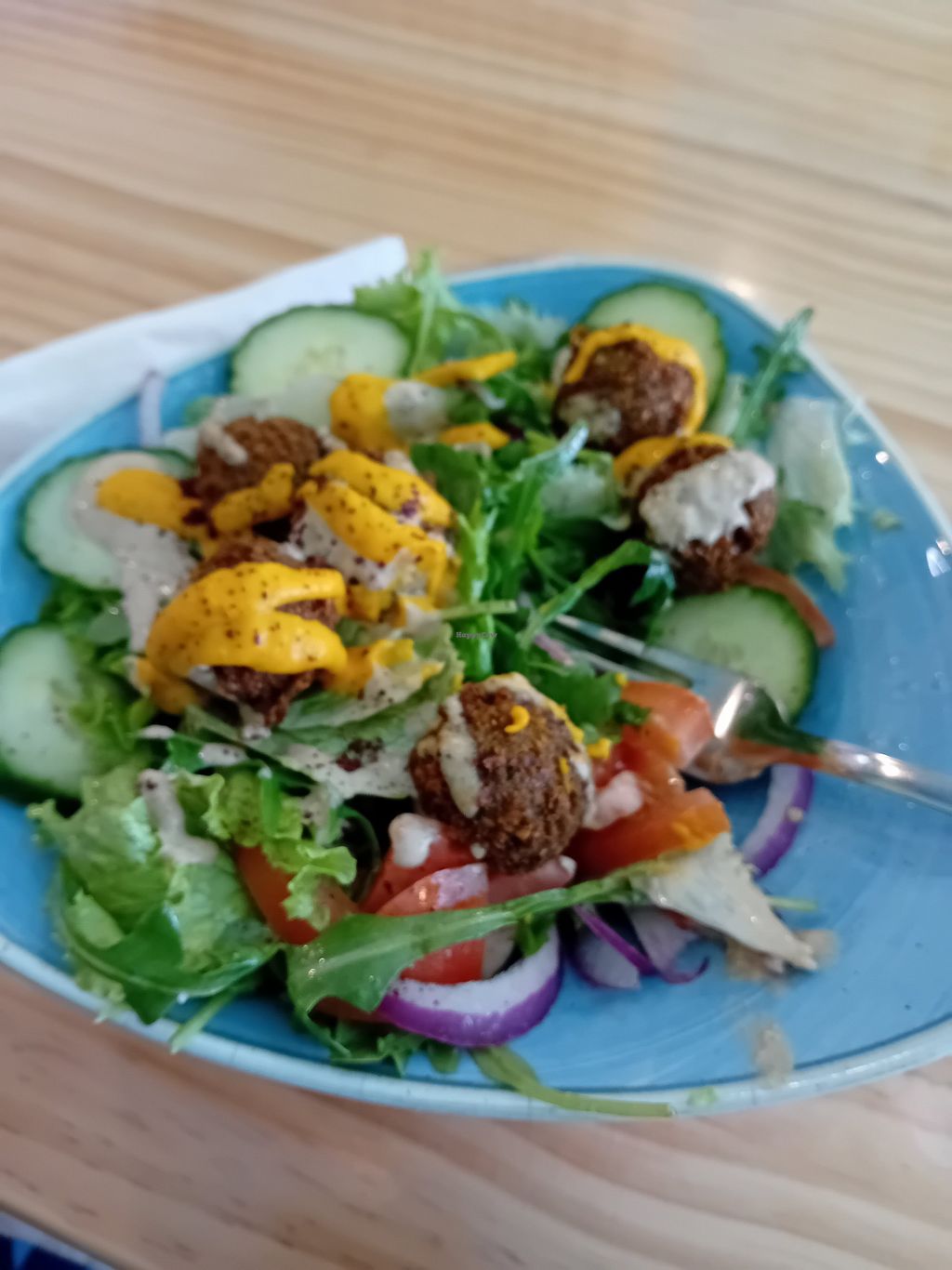 A nice felafel salad and chocolate orange cake.Chilked atmosphere.