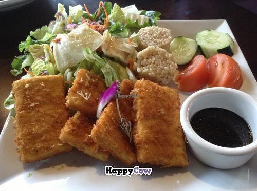 Read moreSo we splurged and ordered: Spicy Tofu on Crispy Rice, Mizuna salad with 3 dressings: kale mustard, black sesame dressing, and honey tofu dressing (only this one is not vegan since it contains honey), Veggie Rainbow Roll, Veggie Ramen, and Veggie Tofu Katsu with brown rice