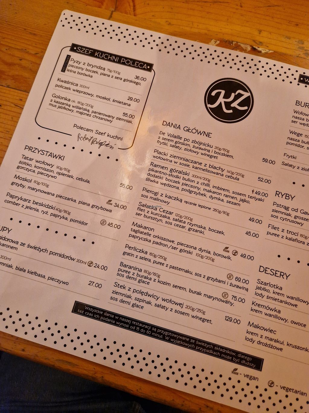 The vegan dishes were offered for each course, including the dessert. They were very tasty and original, definitely worth trying if you are looking for an offbeat plant based meal. The service was very nice, as was the interior combining tradition and highlander accents with architectural modernity. Will come back to check new items on the menu if I'm in Wisla again.