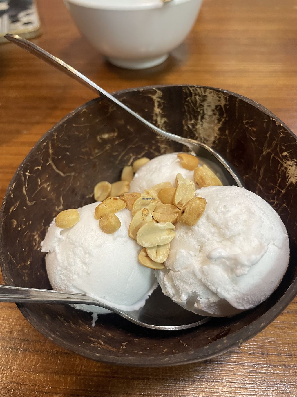 This place is quite different to most of the other Bangkok vegan establishments I've been to. The food is quite good eg the coconut ice cream is delicious as it is not too sweet and has a good balance between thickness and runniness. You can even feel the coconut meat flakes in the ice cream. There are young female Asian (maybe Thai) staff who take your order and deliver the food, and they are very kind, polite, and have beautiful smiles. The owner/manager seems to be a foreigner who was nice enough but not as nice as the Asian staff.