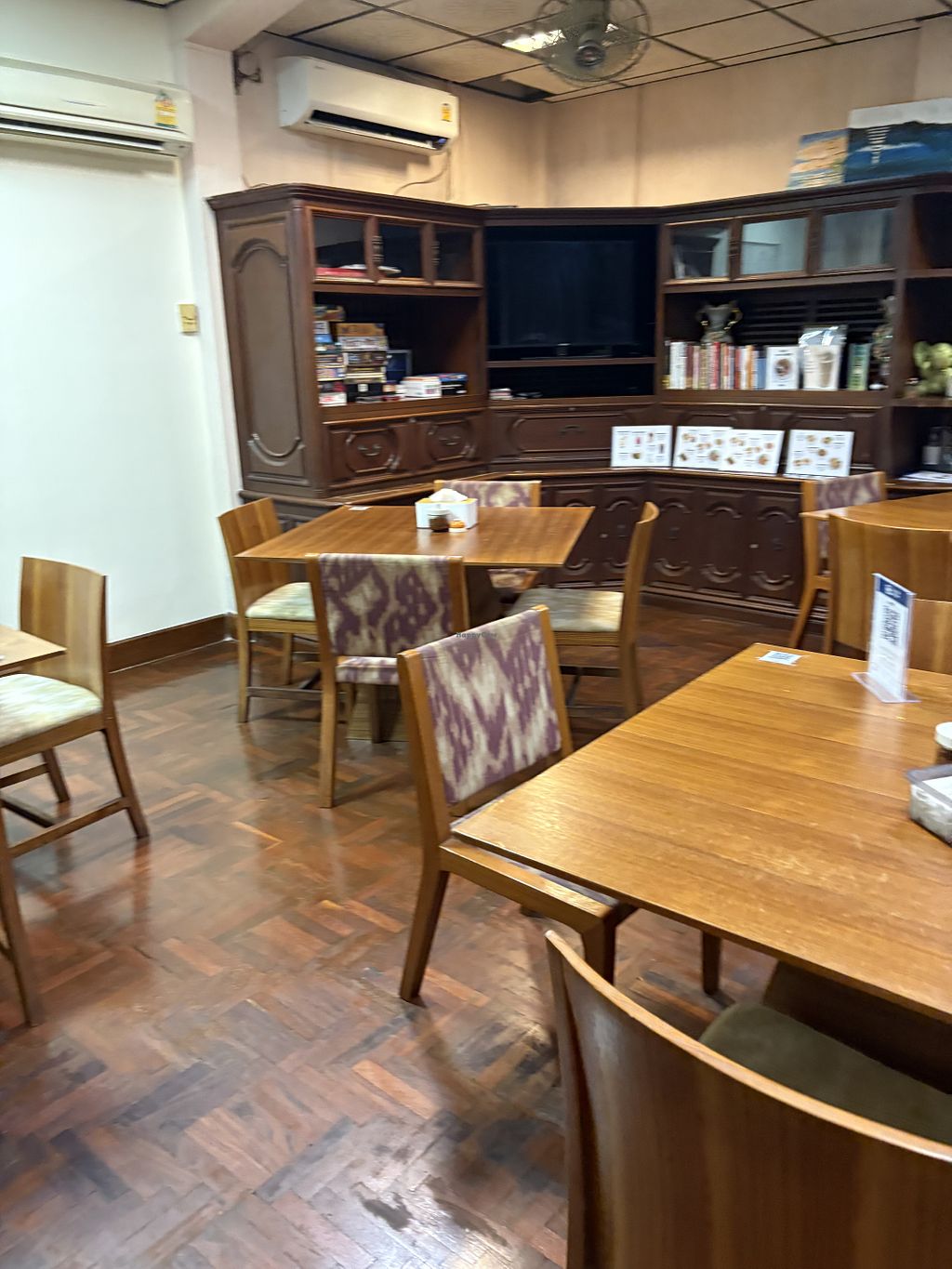 The place is in a little corner where there’s almost no traffic so even sitting outside is not that loud, inside it’s a small nice place, there are some boardgames even, but I‘d say it’s perfect for introverted people who want to eat at a place that’s shut off from the busy life of bangkok. Sadly they don’t accept card, but you can also pay through the Grab app for pickup if you‘re struggling. The food is nice and the prices are very fair, maybe even too low.