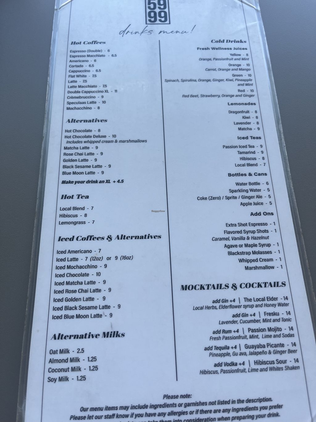 Vegan options clearly marked