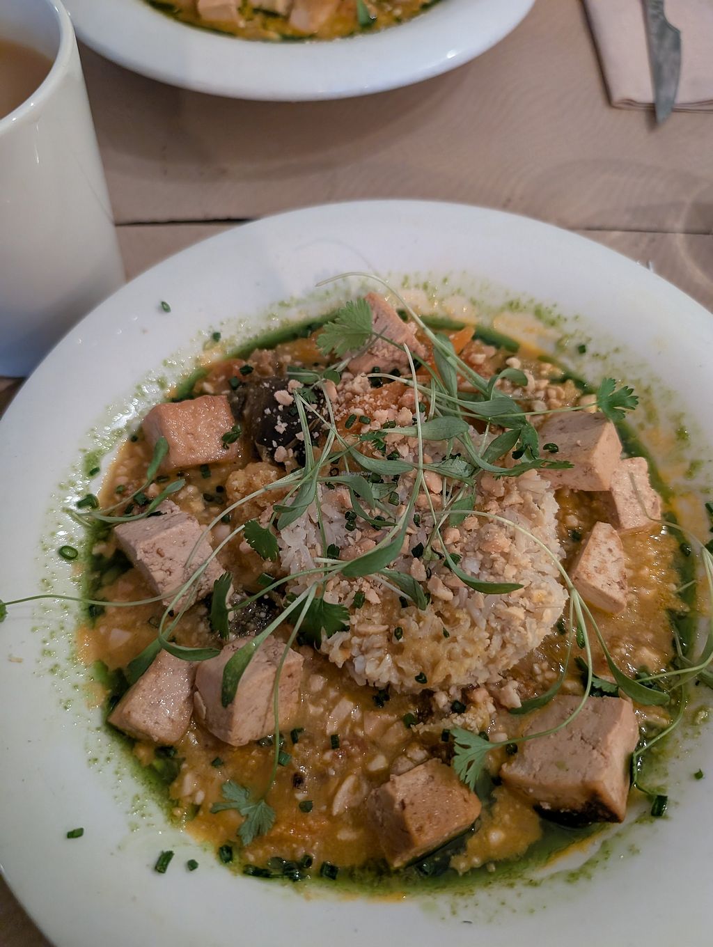 Curry thailandés con verduras, arroz basmati integral y tofu